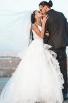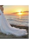 レビュー: ウェディングドレスAラインVネックノースリーブレースアップリケブライダルガウン列車付き