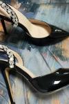 レビュー: ブラックハイヒール、ポインテッドトゥ、ラインストーン、スリングバック、パーティーパンプス