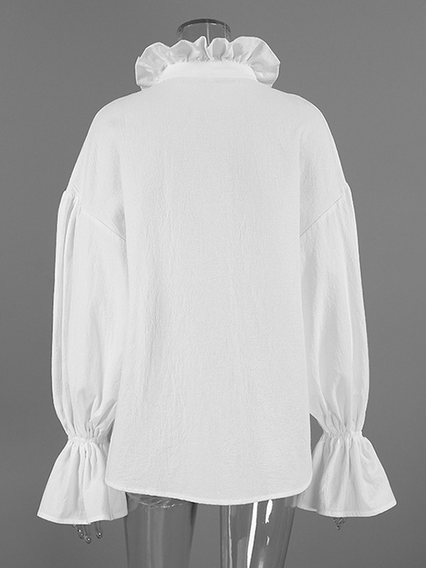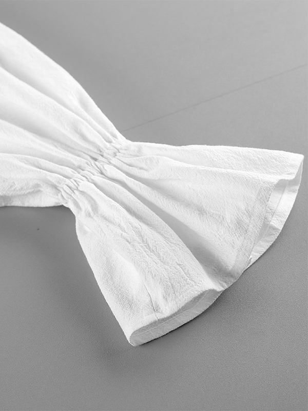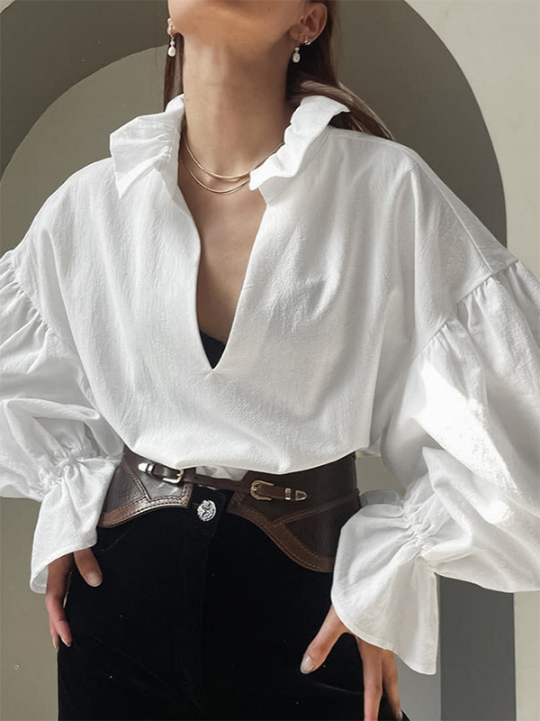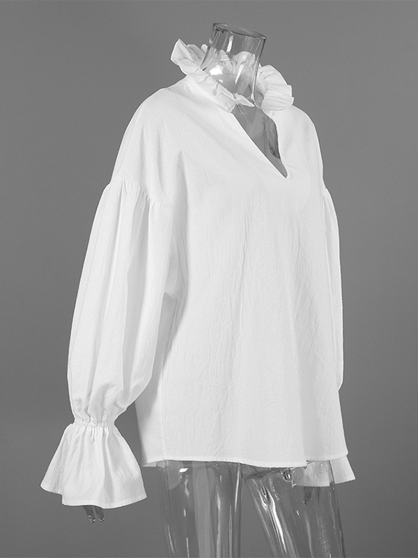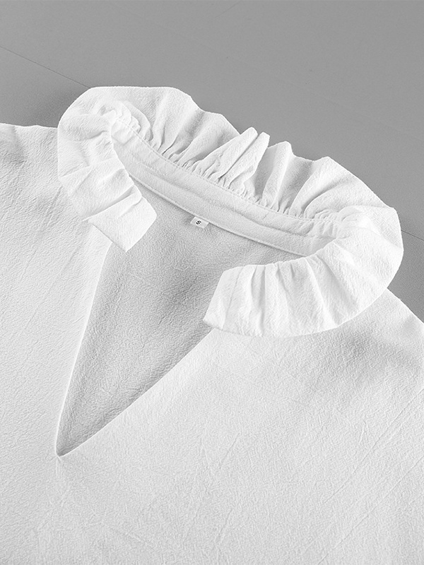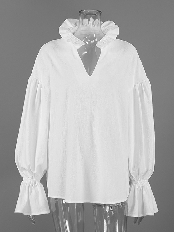 綿100%ブラウス レディース シック ボヘミアン トップス - ホワイト フリルネック ランタンスリーブ Vネック - ビーチバケーション 2026