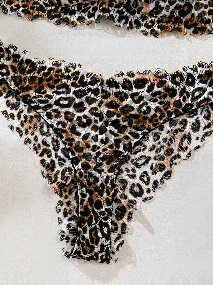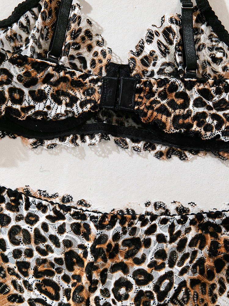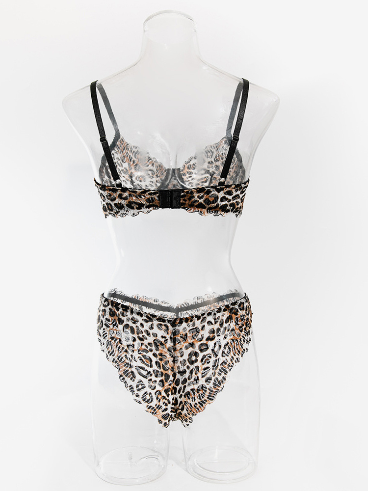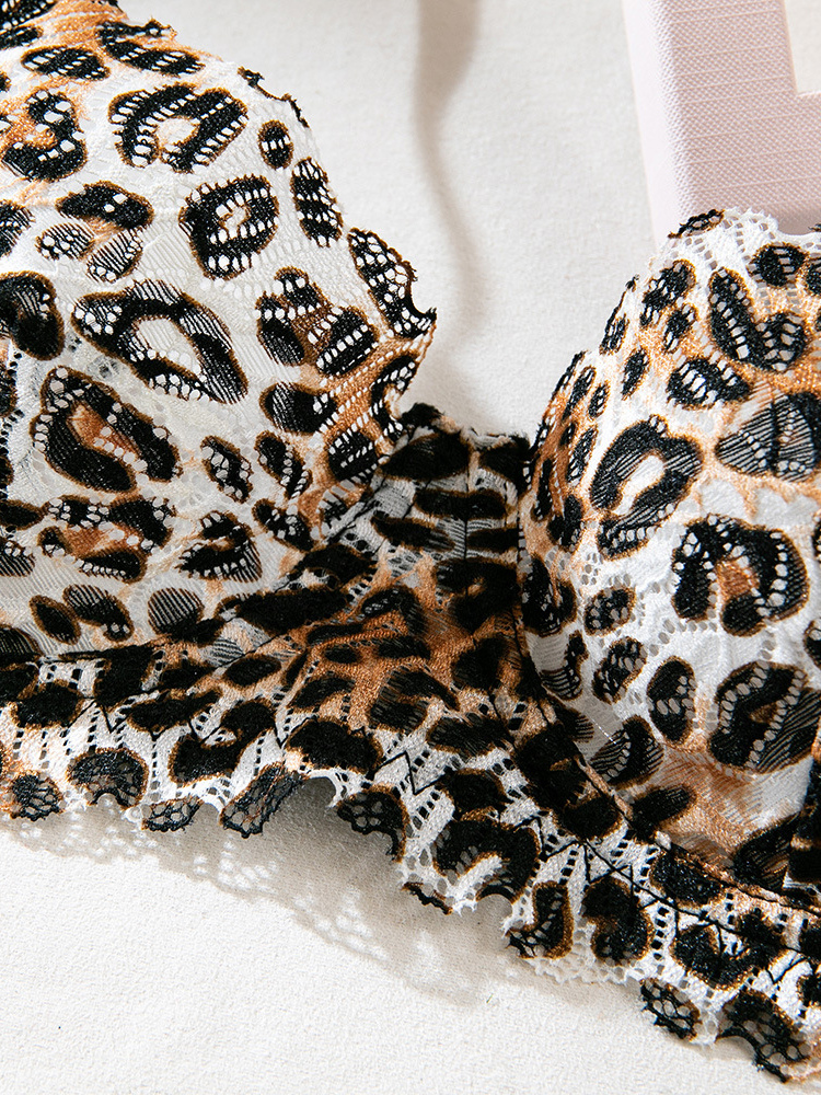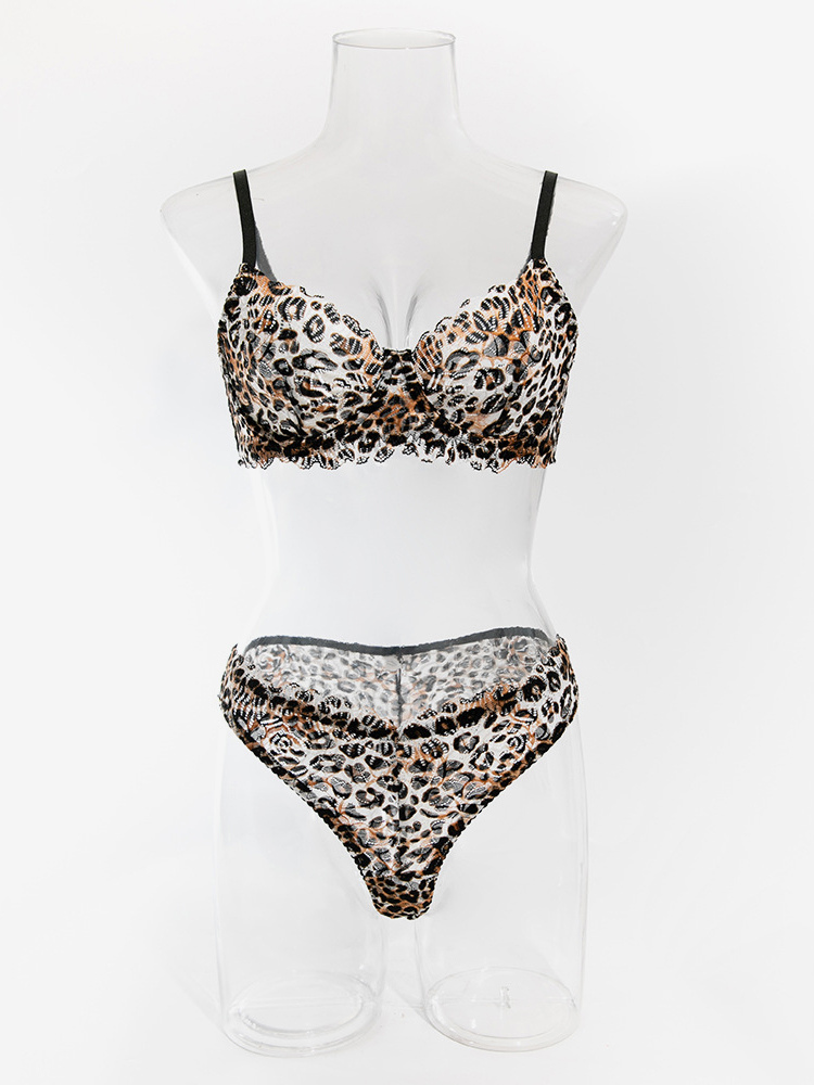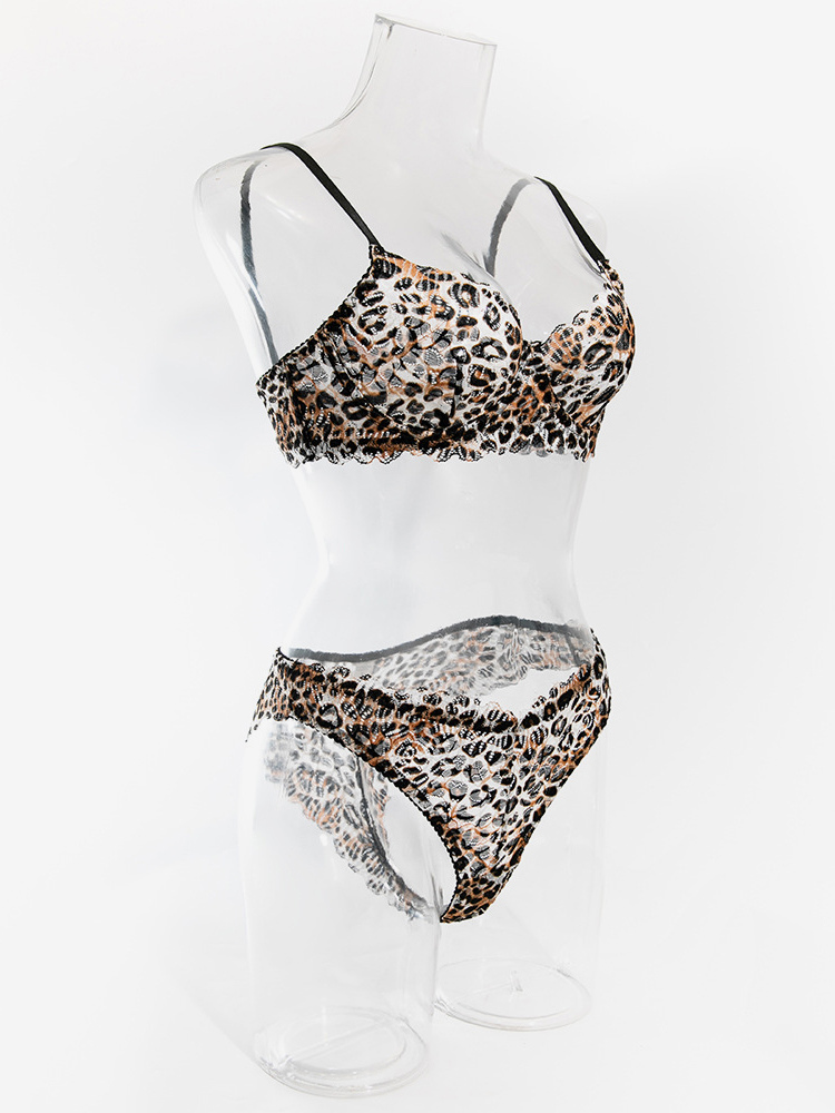 レオパード柄シェイプアップレース付きブラウンブラジャー&ショーツ2点セット