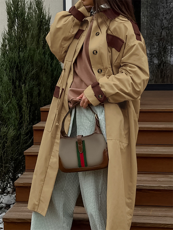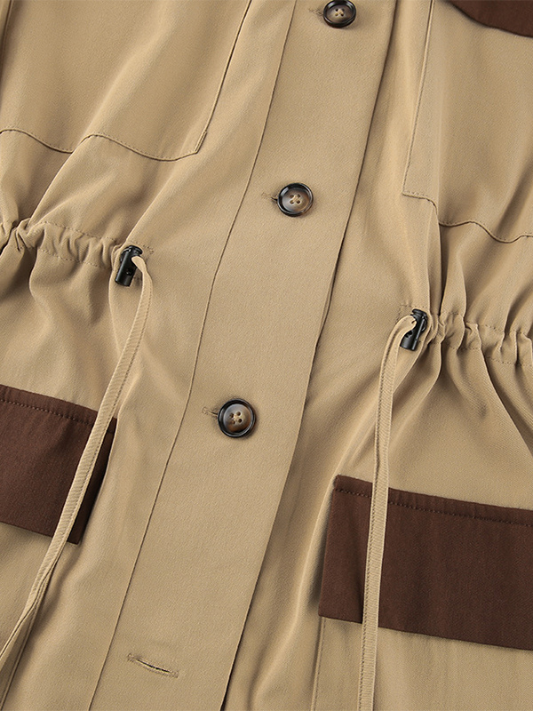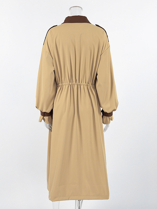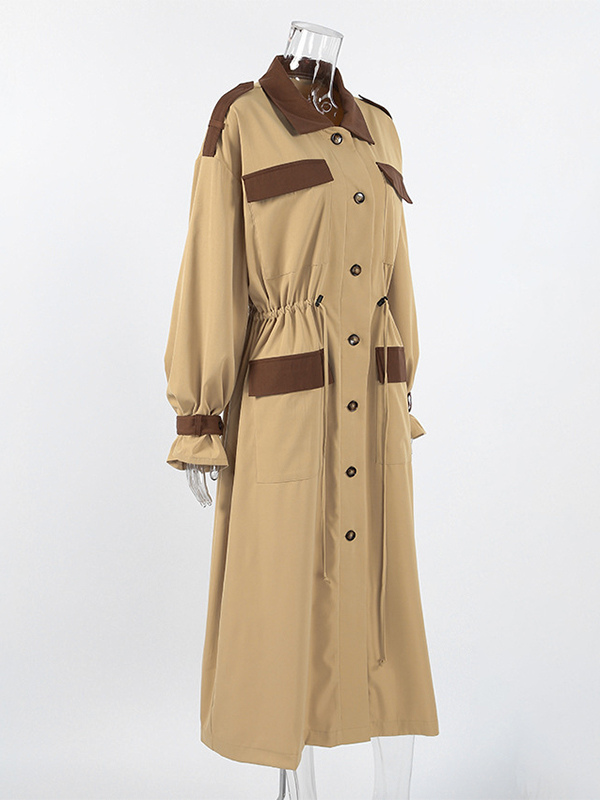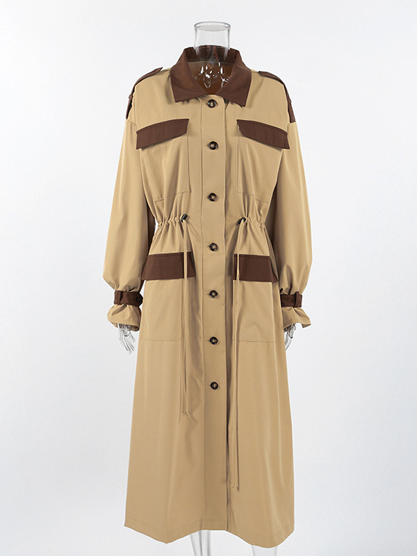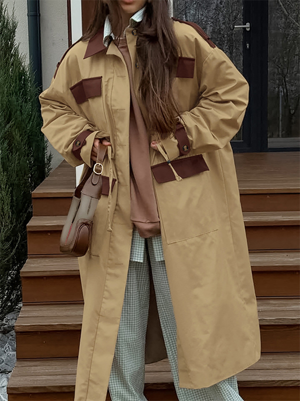 Barn カラーブロック レディース ロングトレンチコート - ユーティリティ ドローストリングウエスト ロングラインフィット - サファリスタイル 春のカジュアルアウター 2026