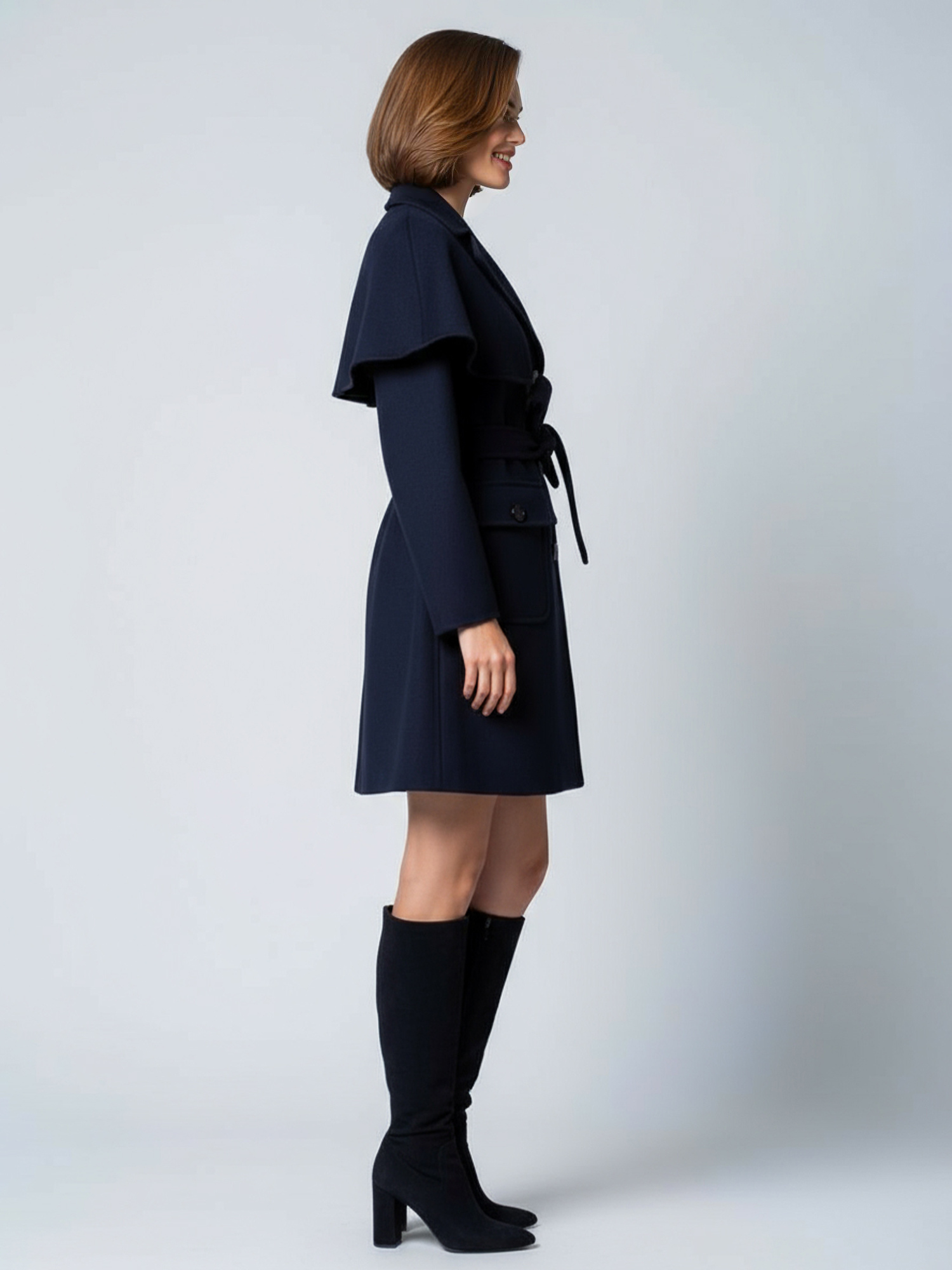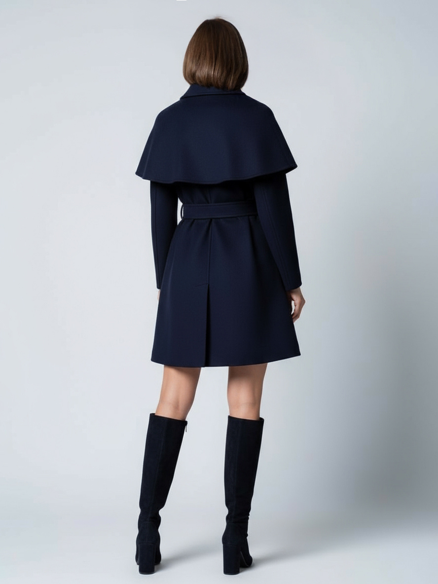 取り外し可能なケープレットとAラインシルエットのベルト付きショートウールコート(レディース 2025年)