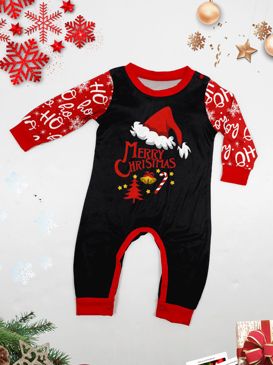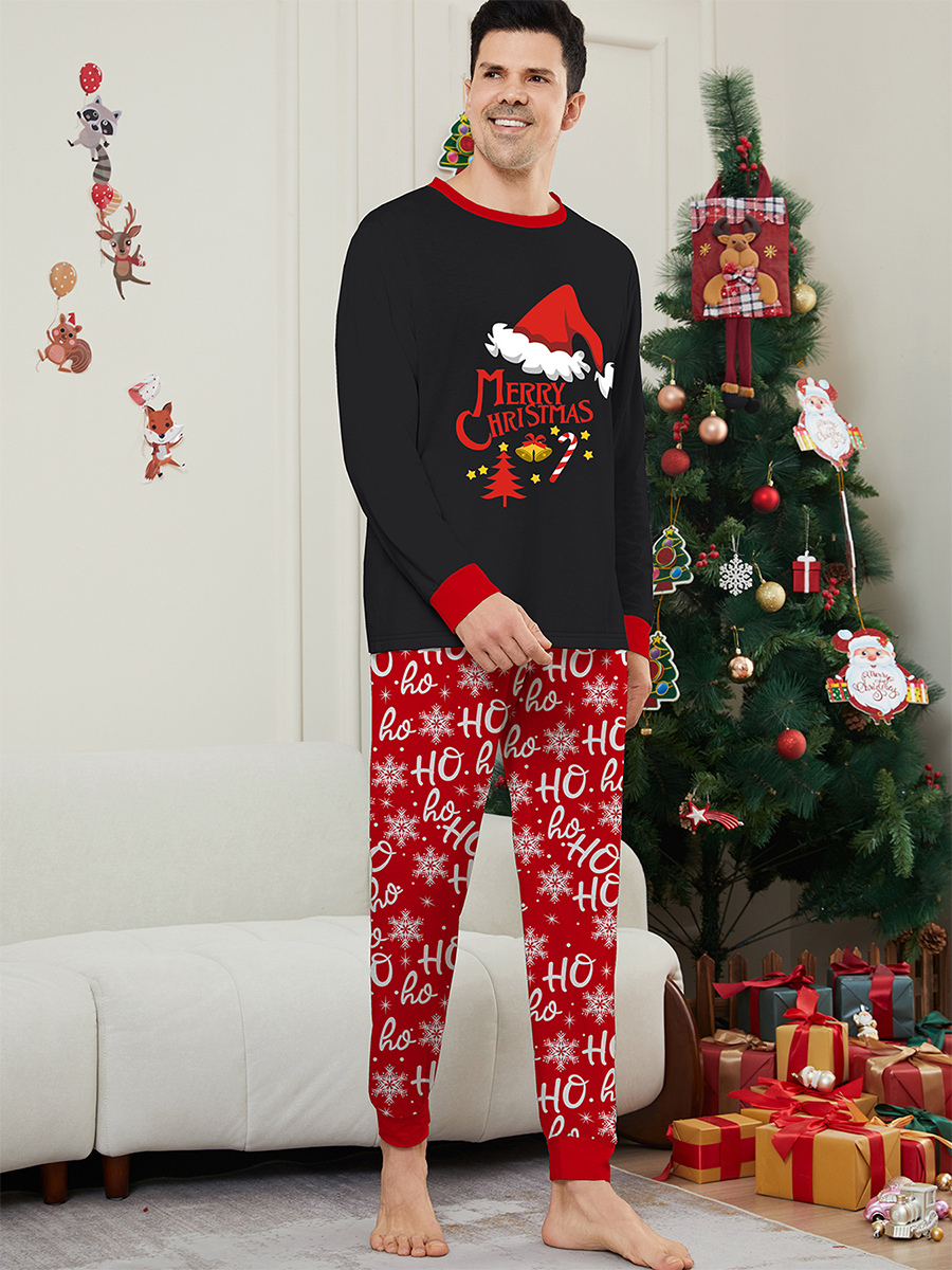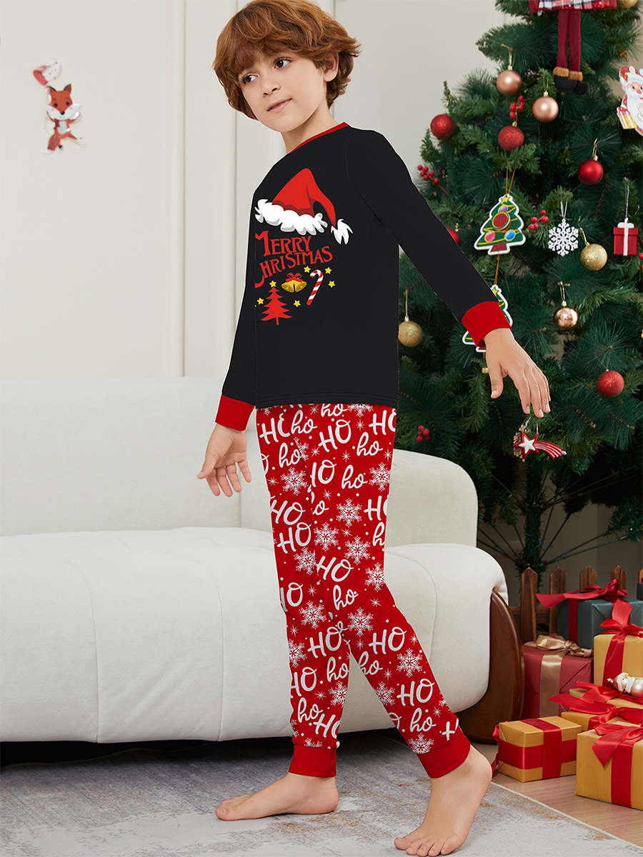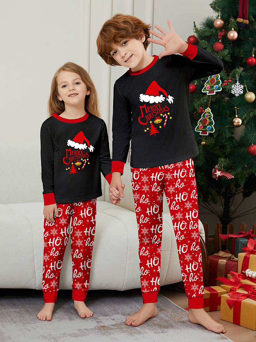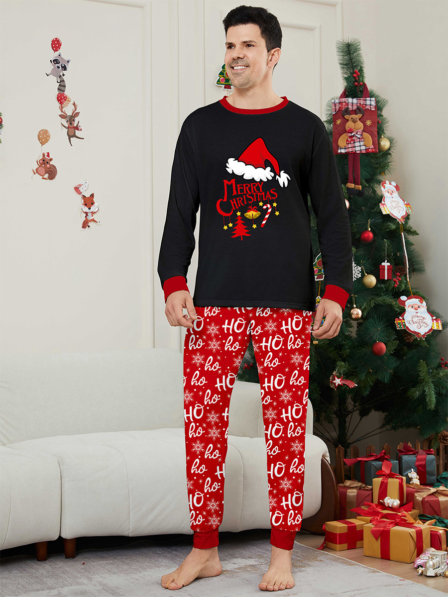黒と赤のファミリー向けクリスマスパジャマ(サンタハット、ホーホーホーパンツ付き)2025年