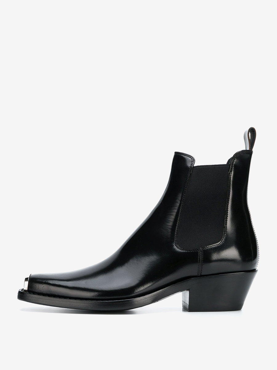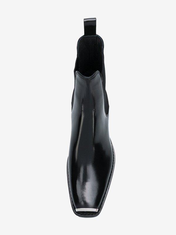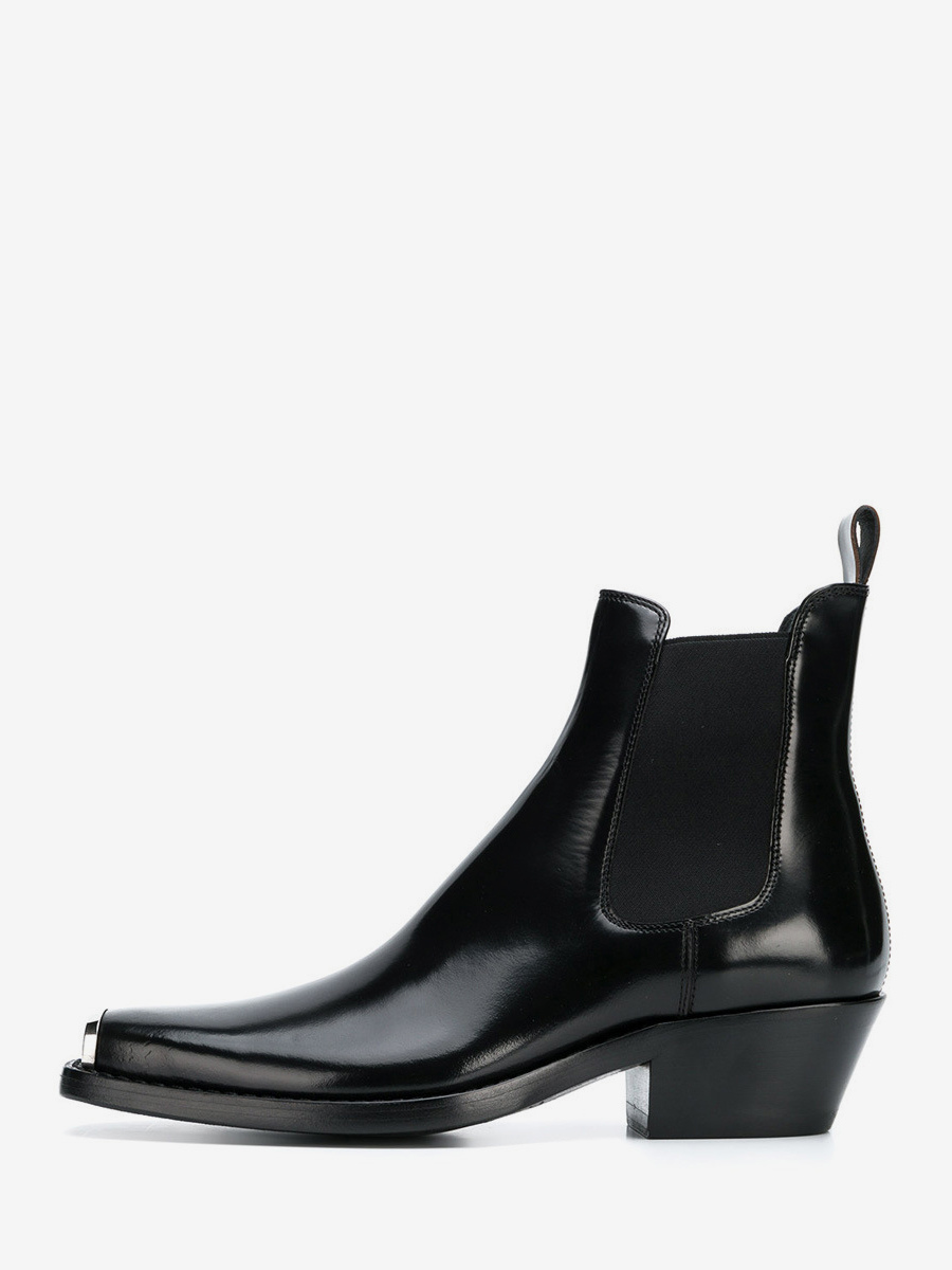 ブラック アンクルブーツ メンズ スクエアトゥ メタルディテール チャンキーヒール チェルシーブーツ