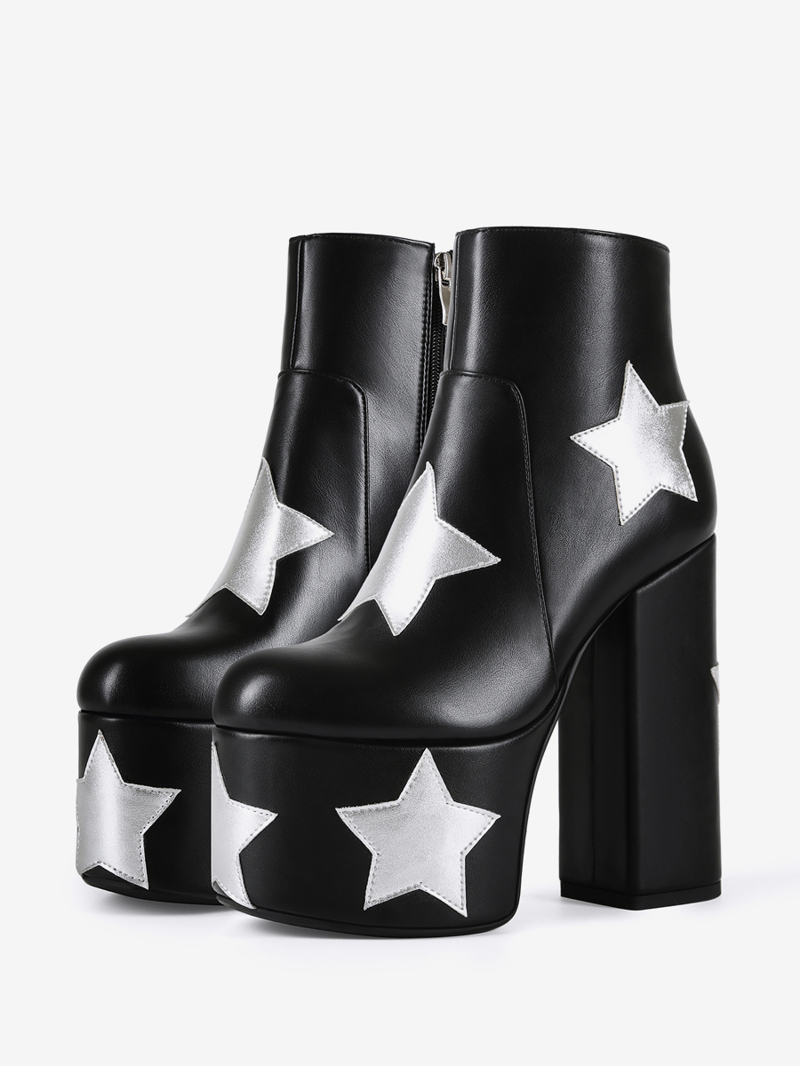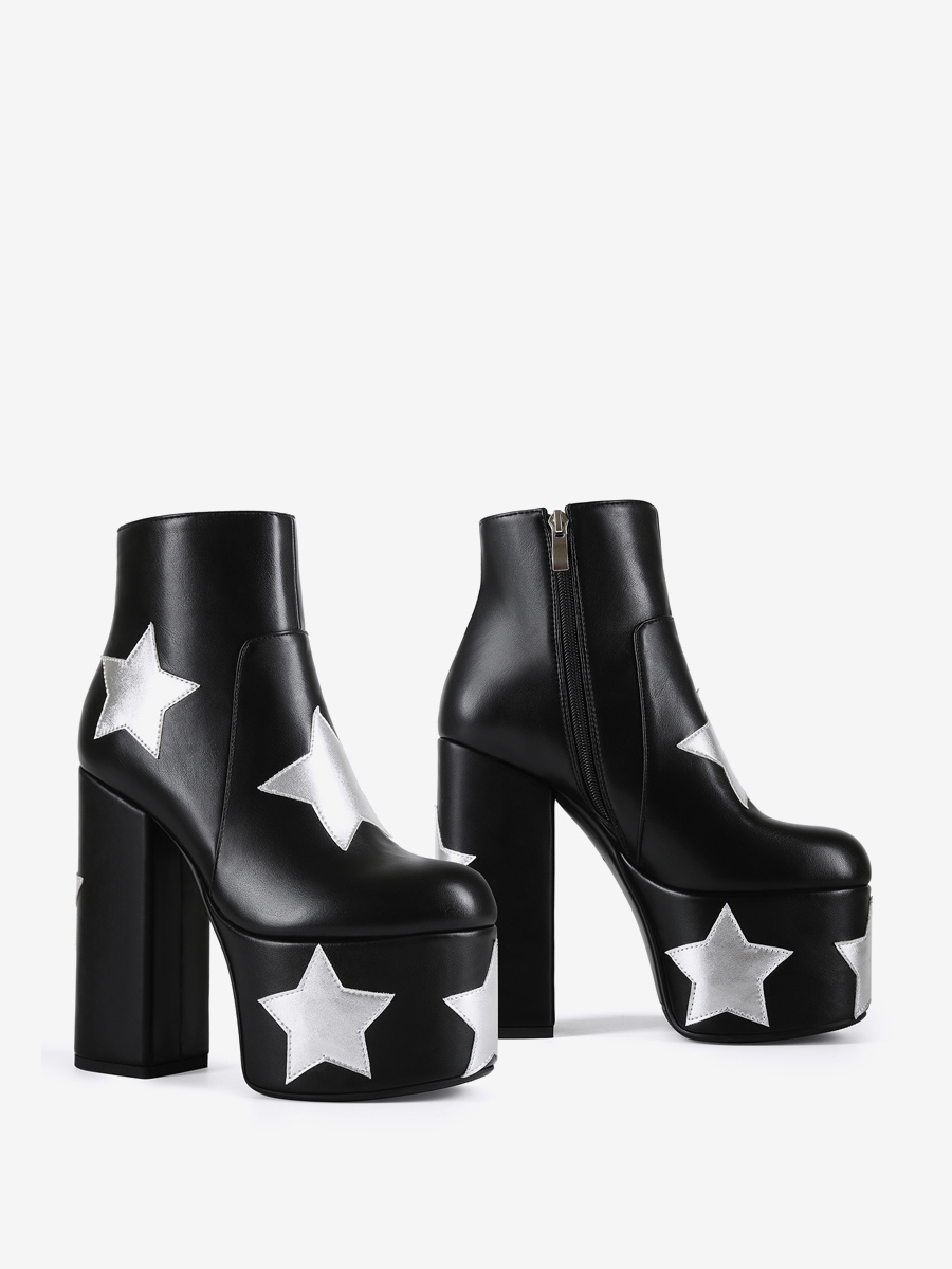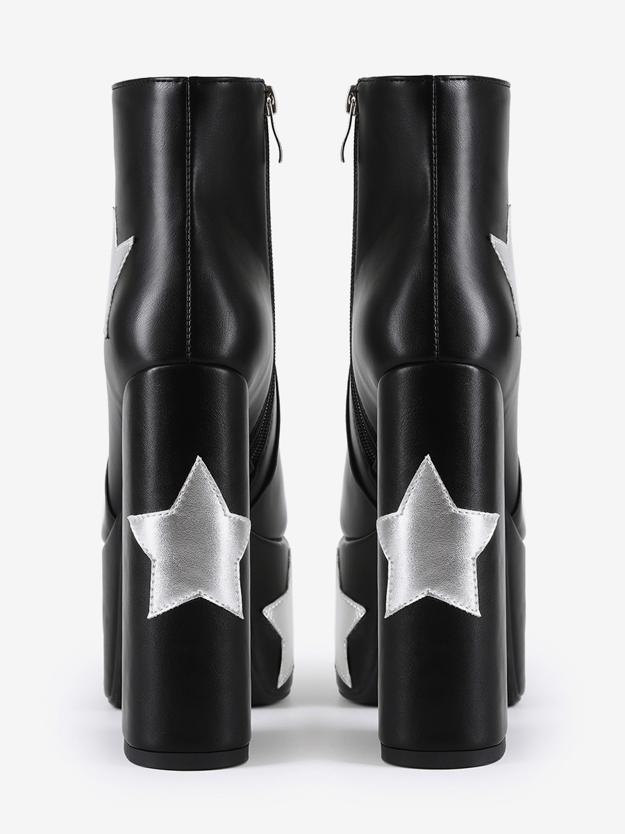 レディース ブラック アンクルブーツ プラットフォーム スター柄 チャンキーヒール ブーティ