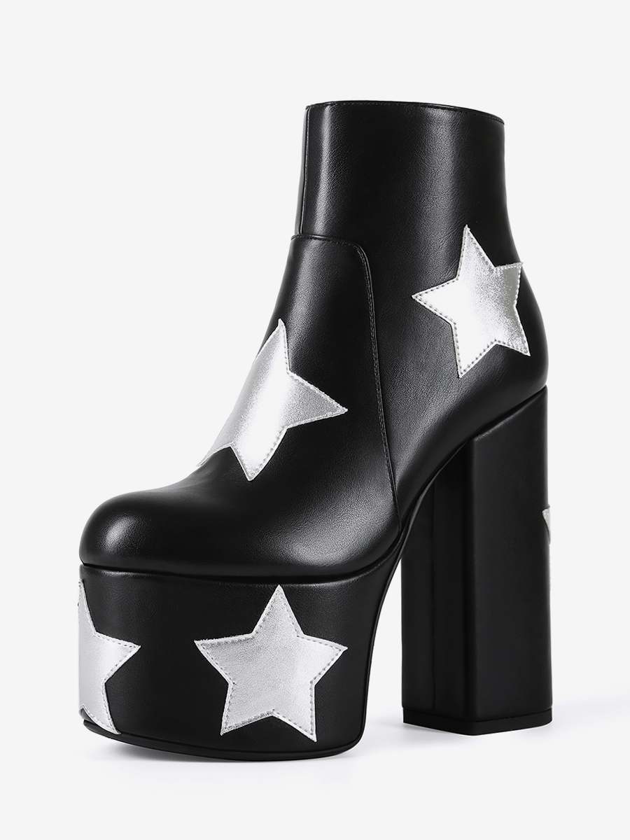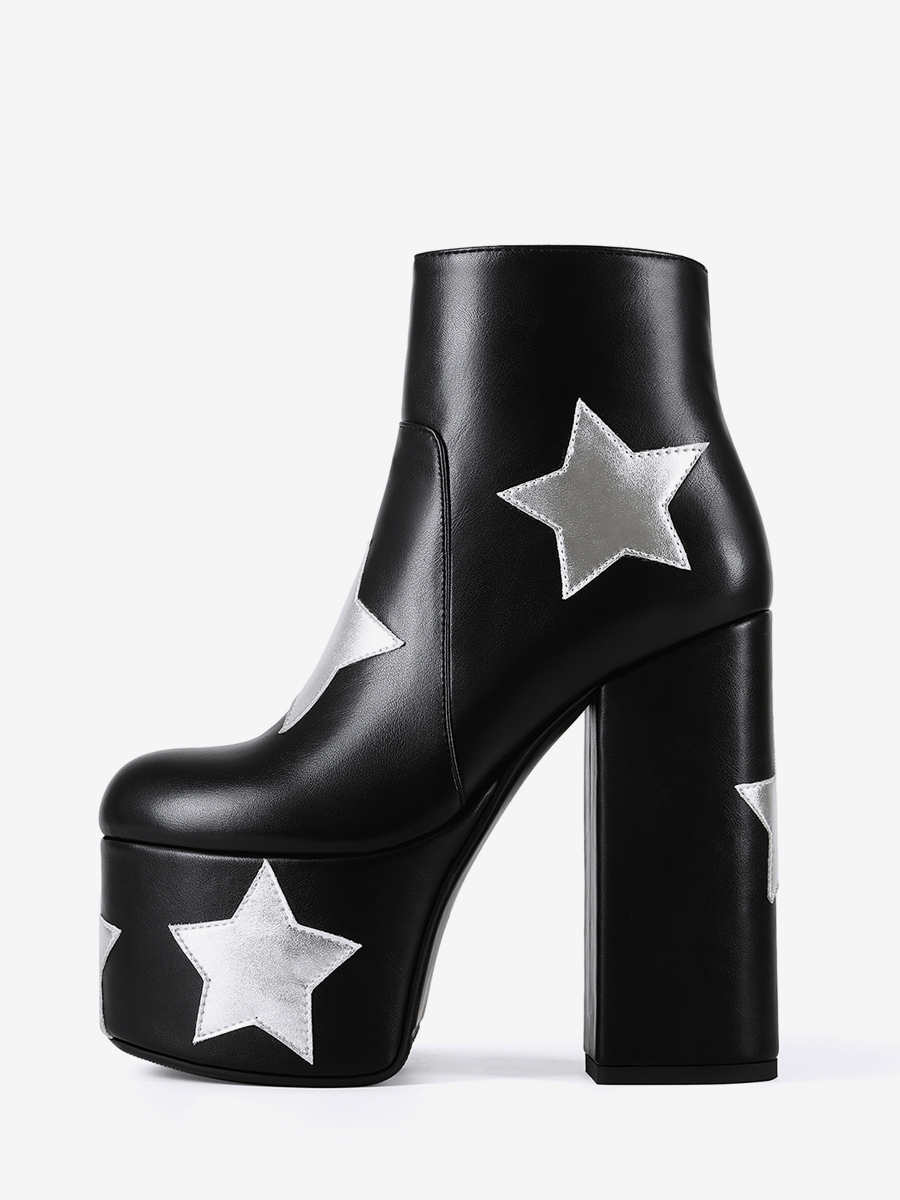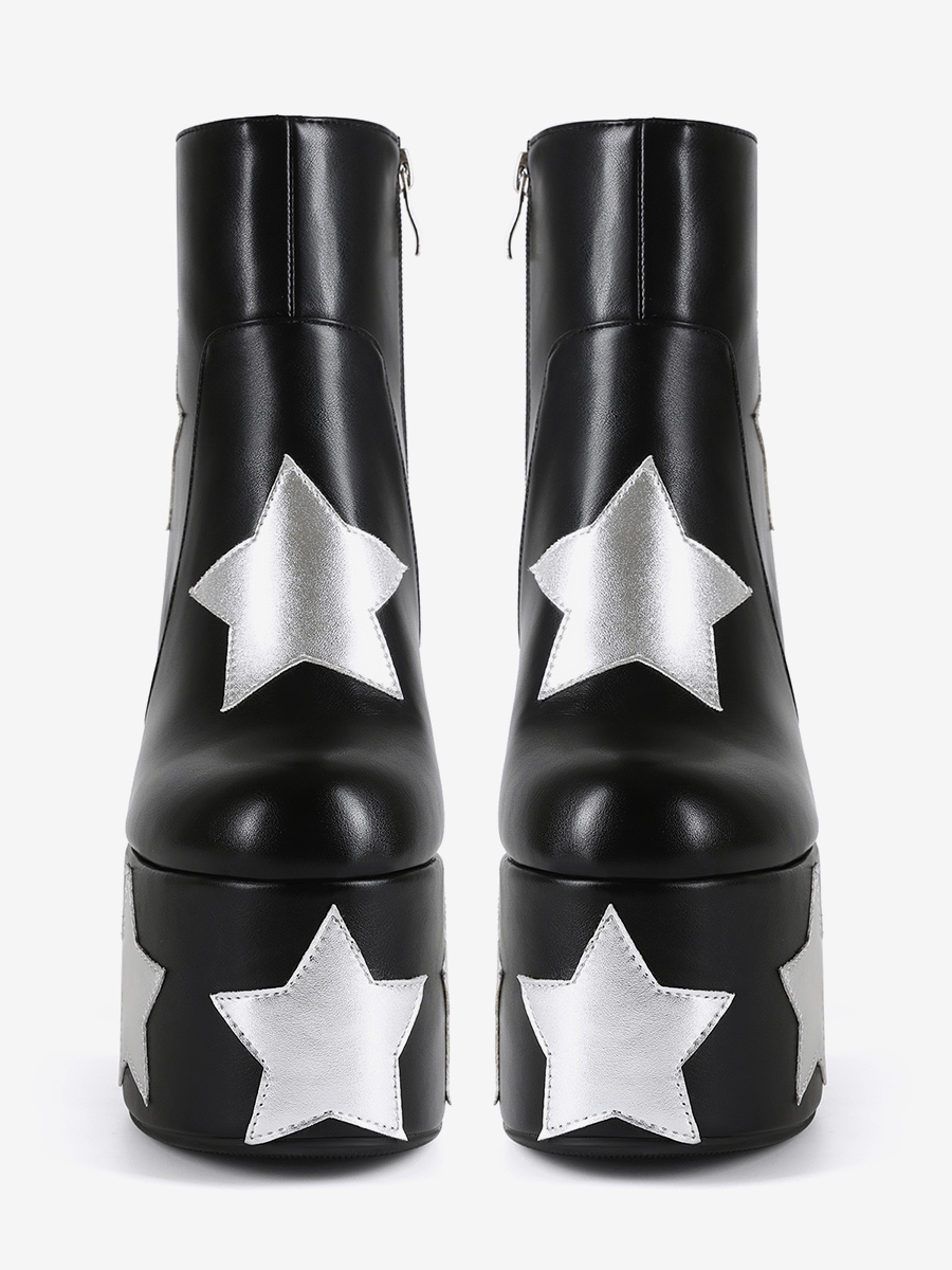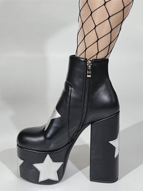 レディース ブラック アンクルブーツ プラットフォーム スター柄 チャンキーヒール ブーティ