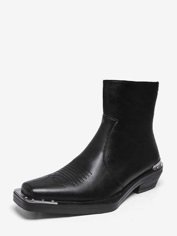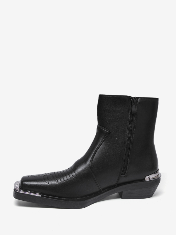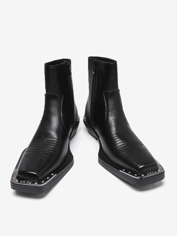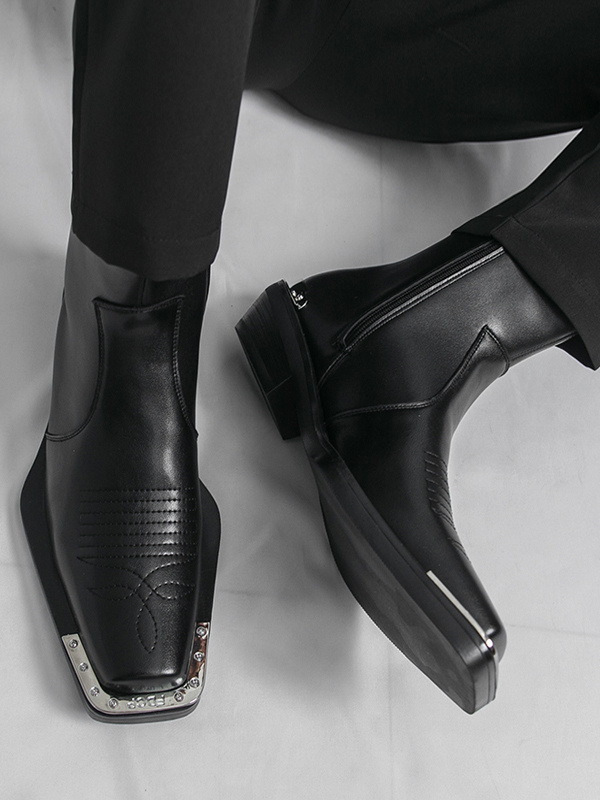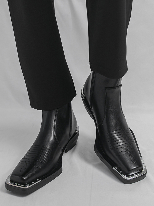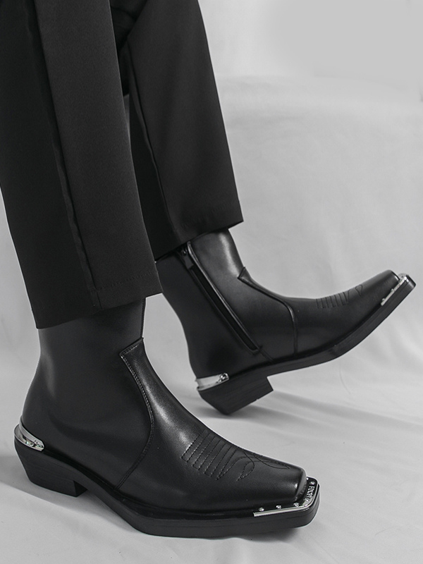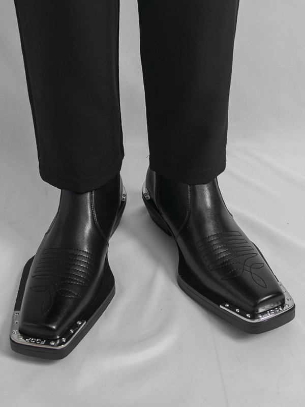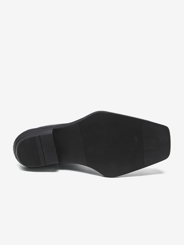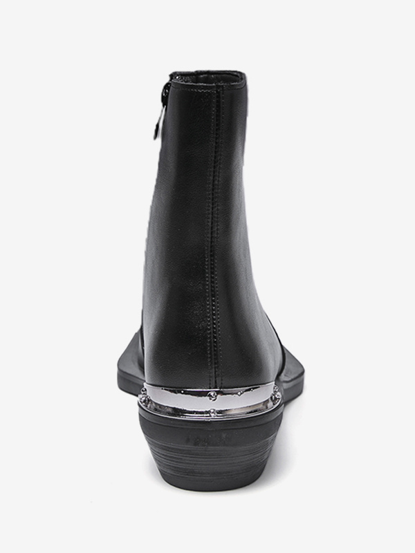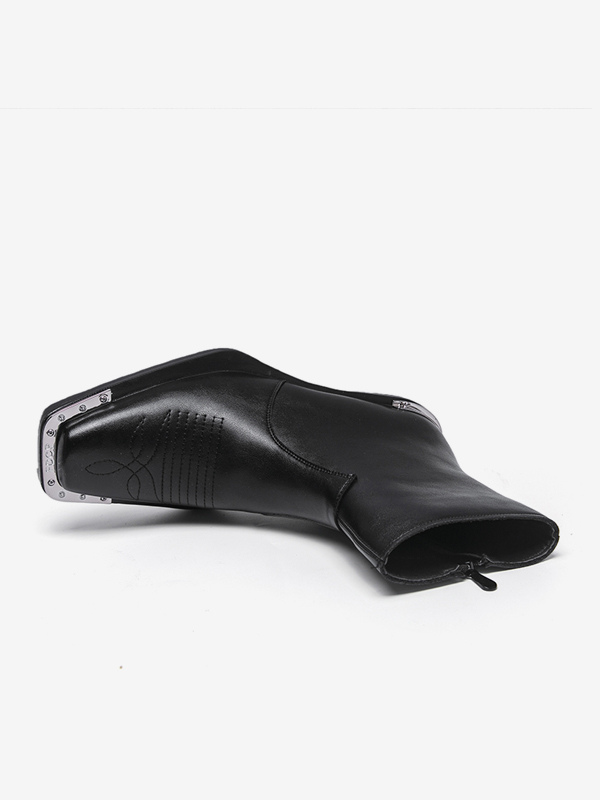 ブラック アンクルブーツ スクエアトゥ メタルディテール チャンキーヒール ブーティ