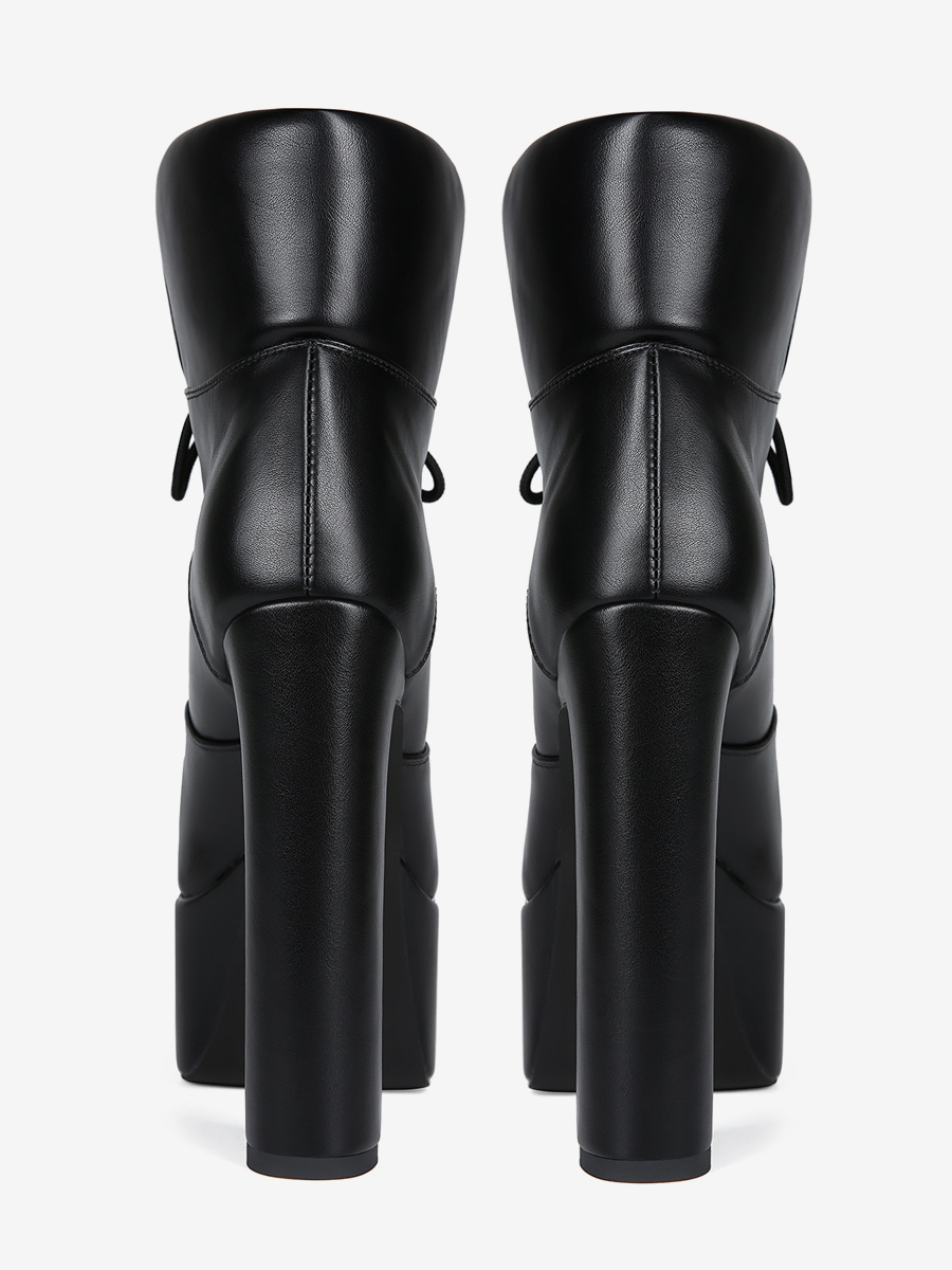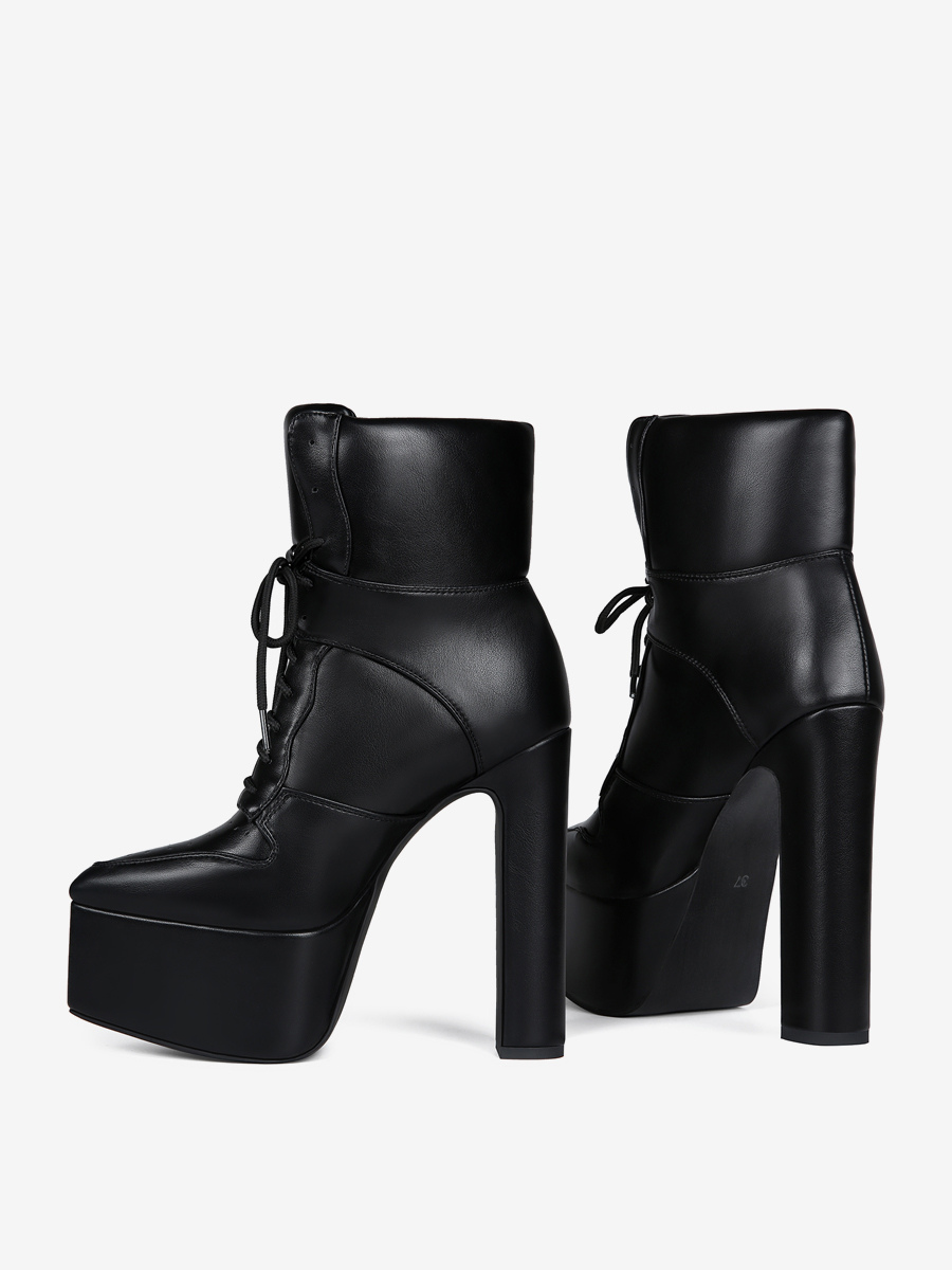 ブラック アンクルブーツ レディース プラットフォーム レースアップ チャンキーヒール ブーティ