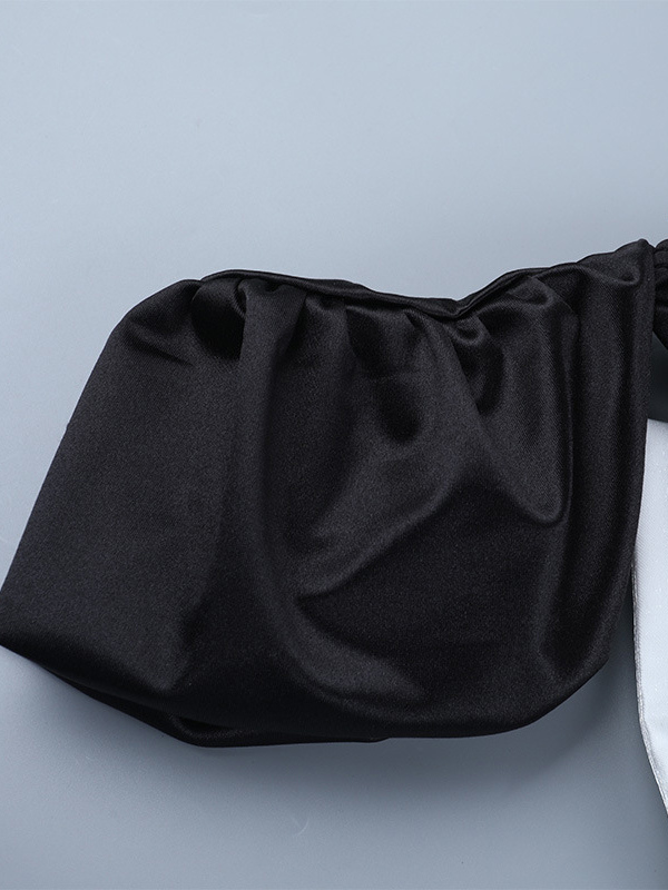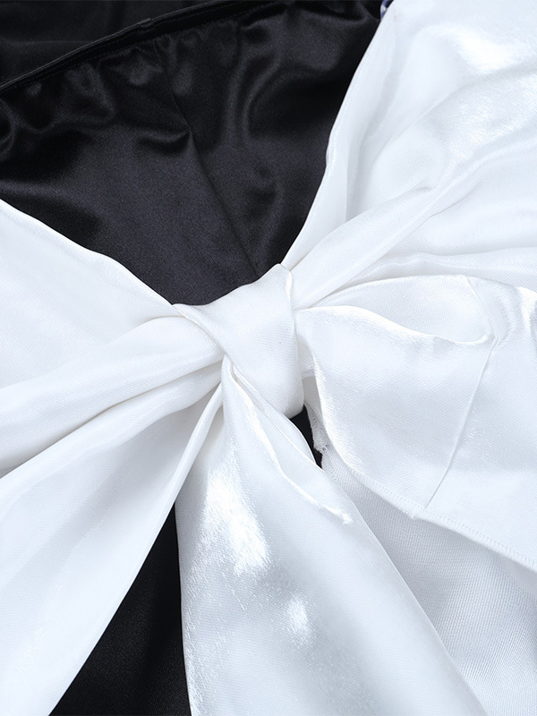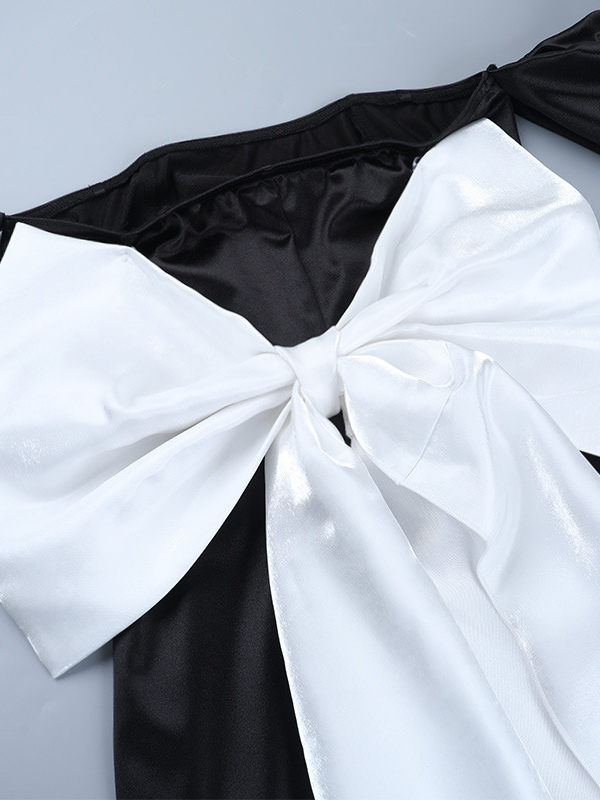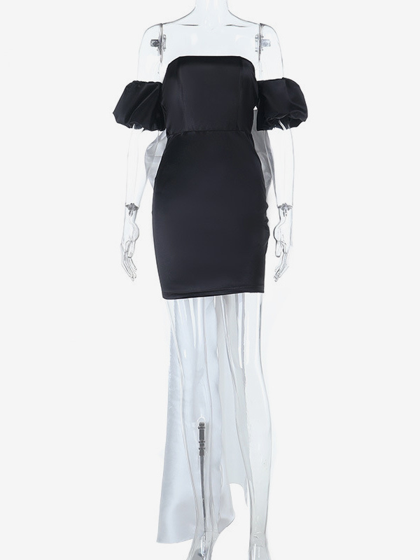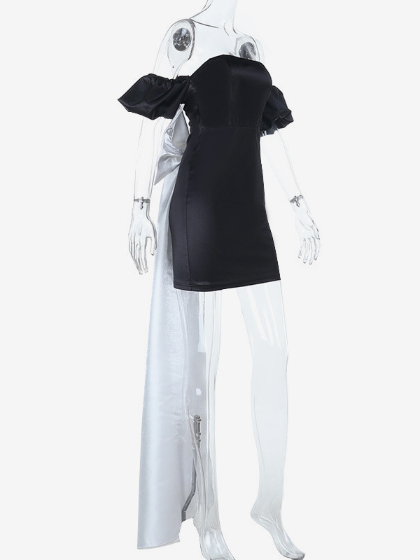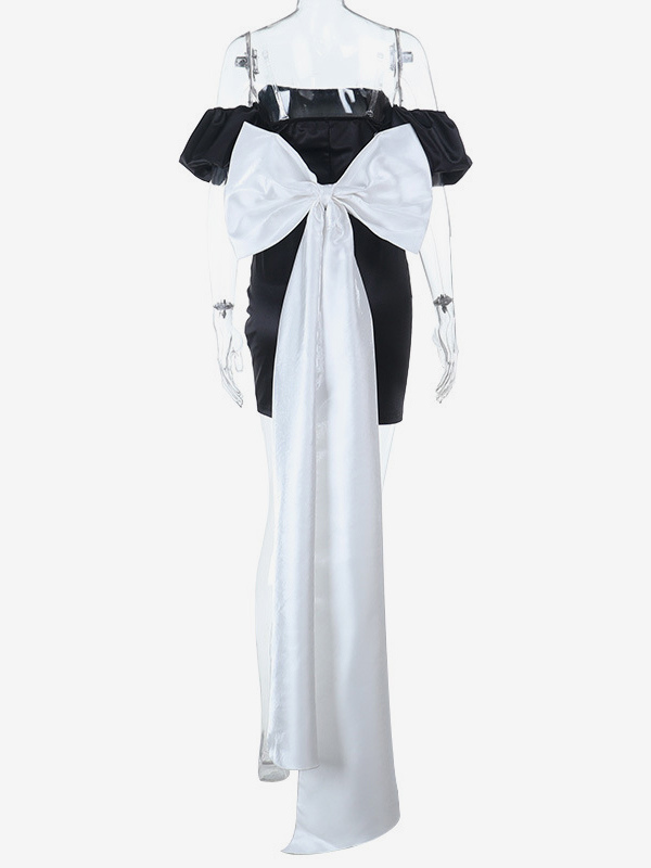 ブラックボディコンレディースミニドレス - オフショルダーホワイトリボンバックトレーン付き - セクシーなストラップレスサマーバースデーパーティーガウン 2026