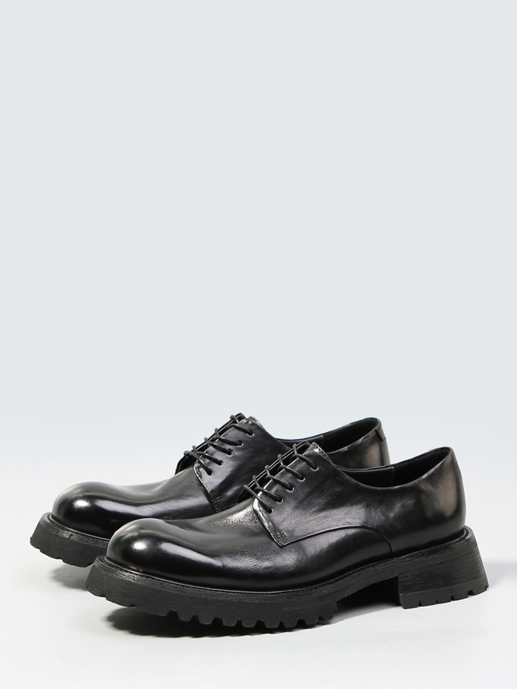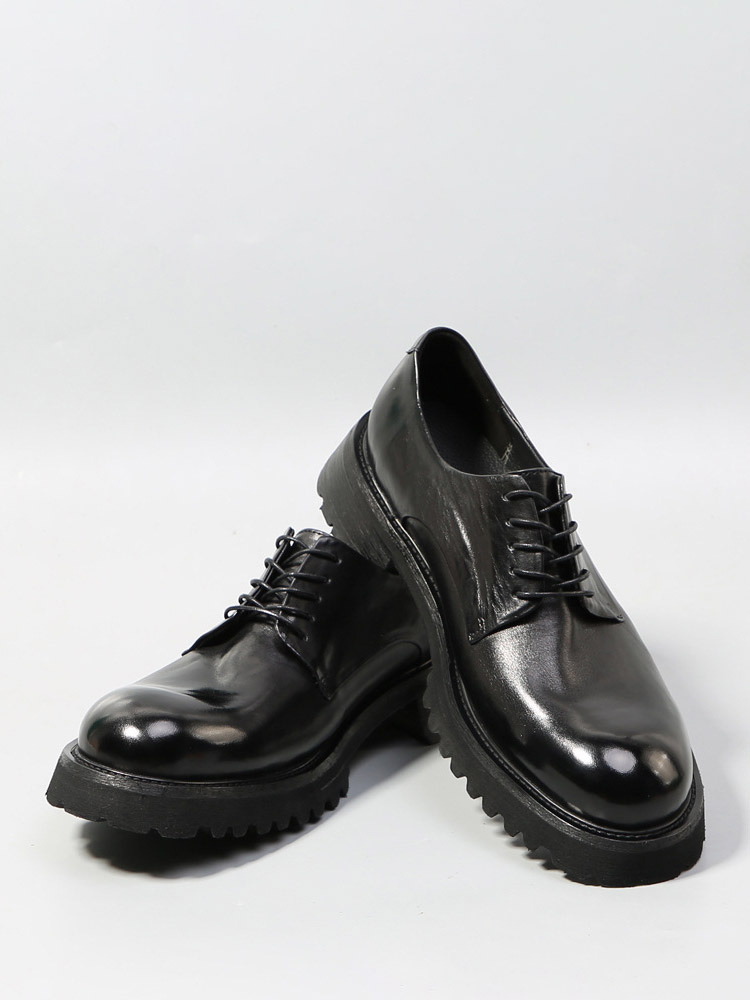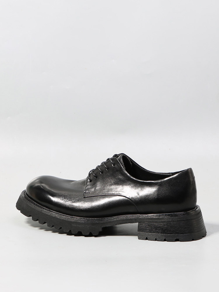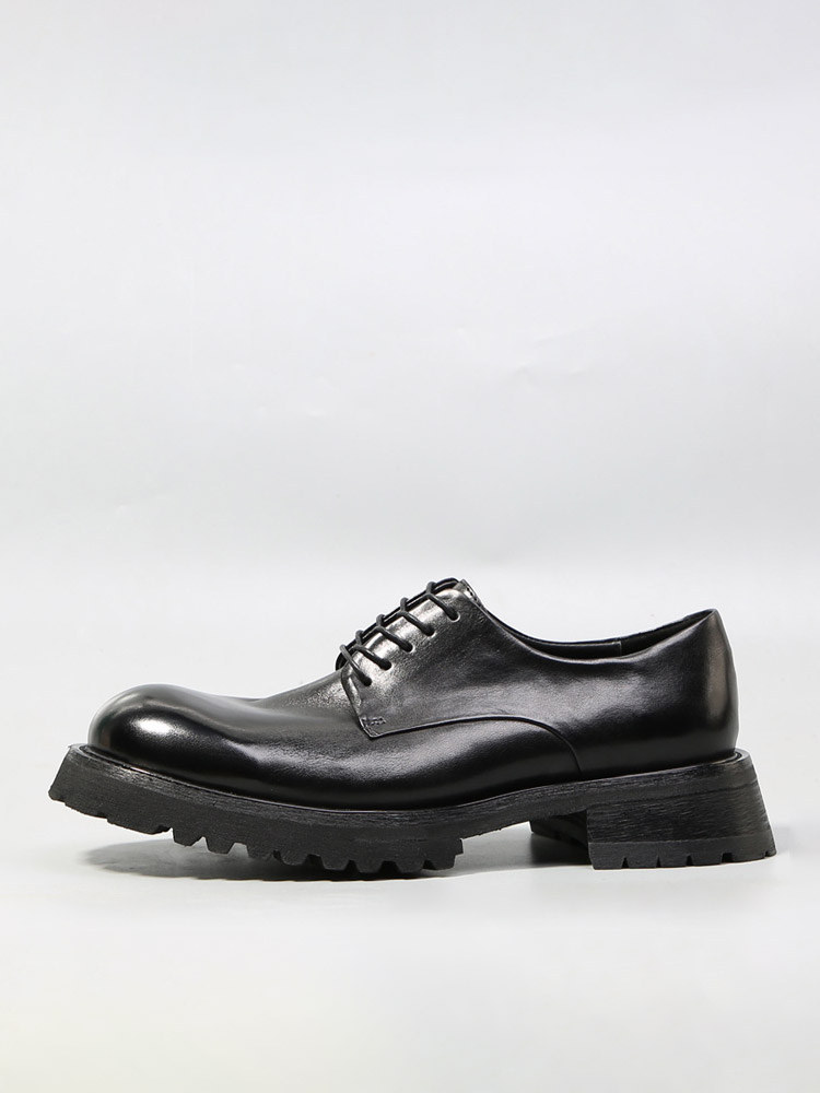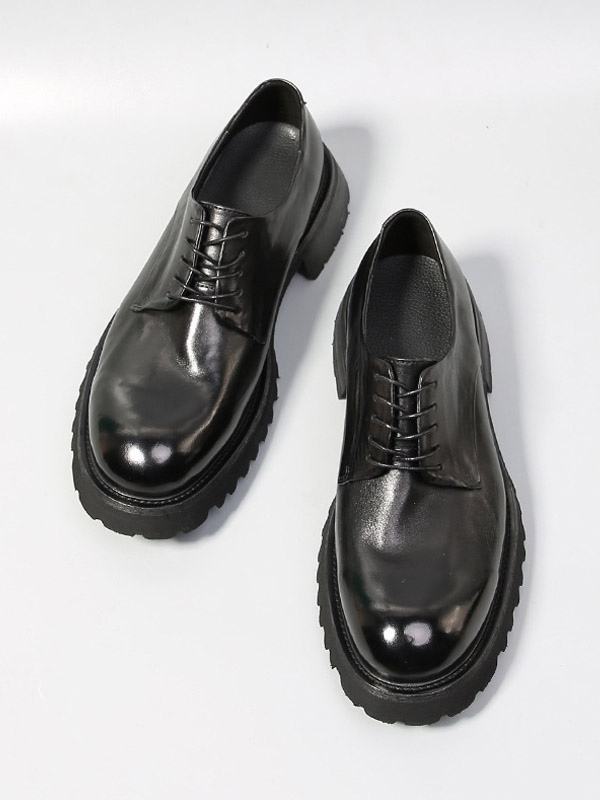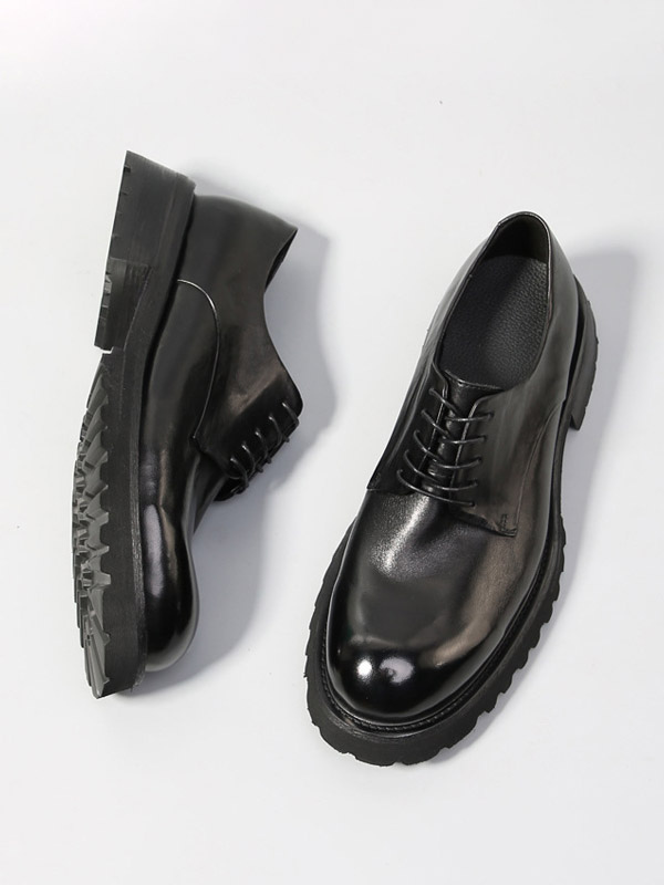 ブラック カジュアルシューズ 本革 ラウンドトゥ レースアップシューズ