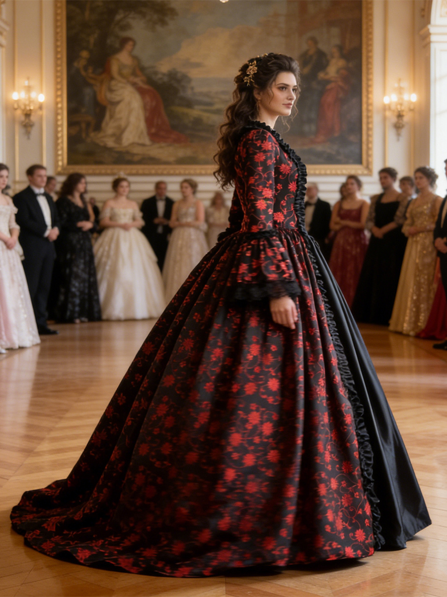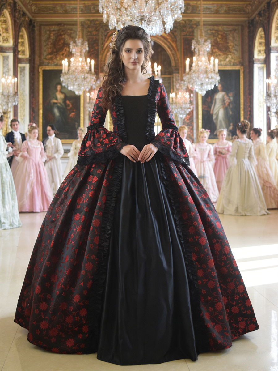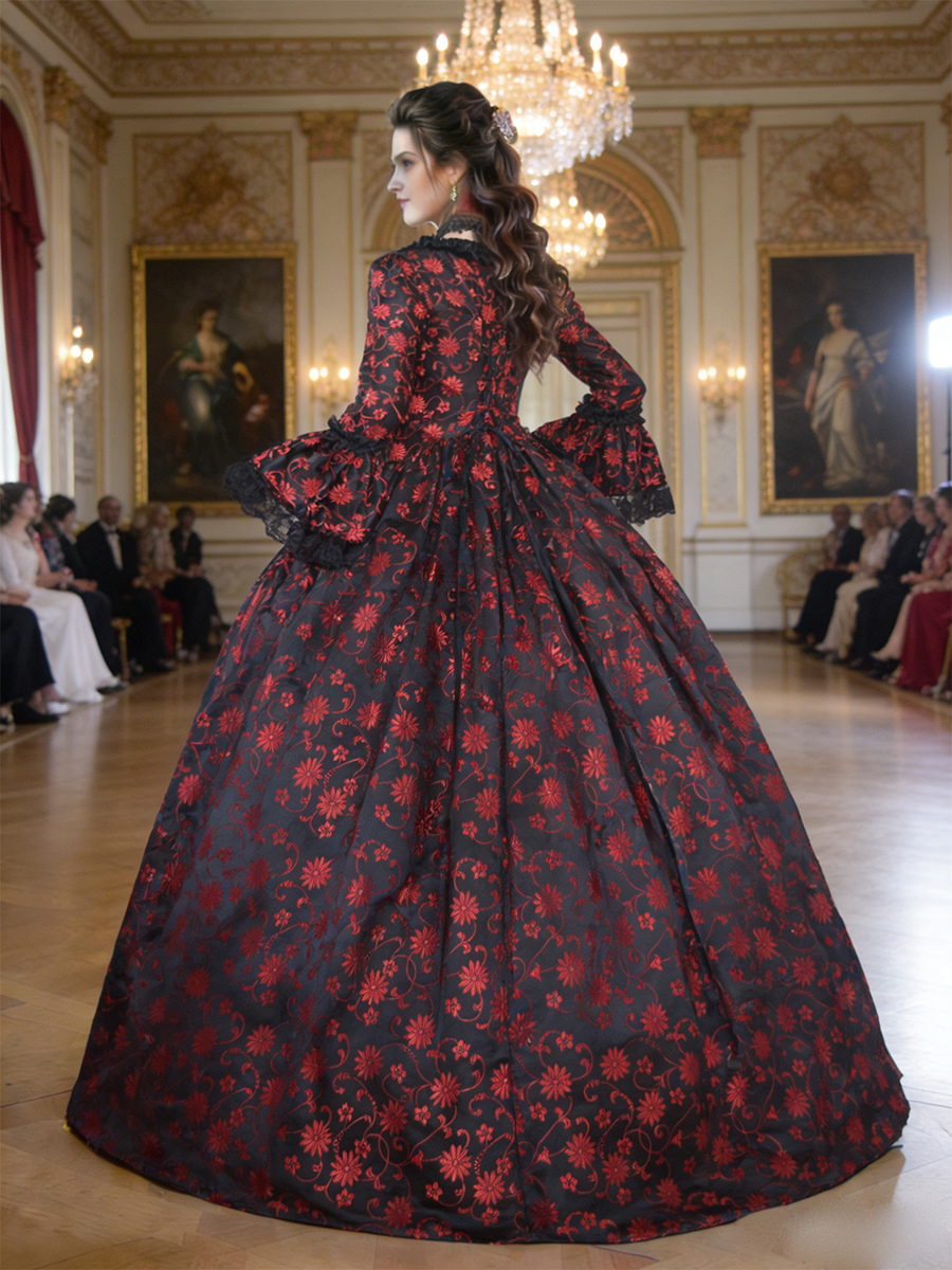 ブラック ゴールド レトロ コスチューム レディース マリー アントワネット コスチューム 花柄 レースアップ サテン生地 セット チョーカー ゴシック 18世紀 コスチューム