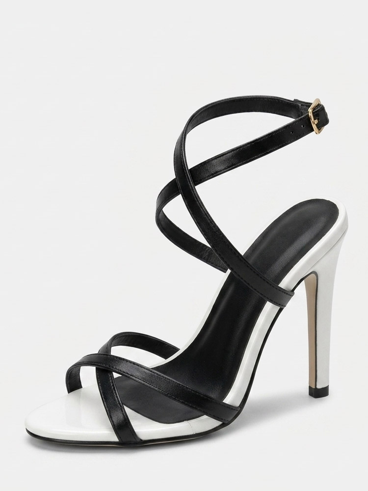 ブラック ハイヒールサンダル レディース オープントゥ スティレットヒール プロムシューズ