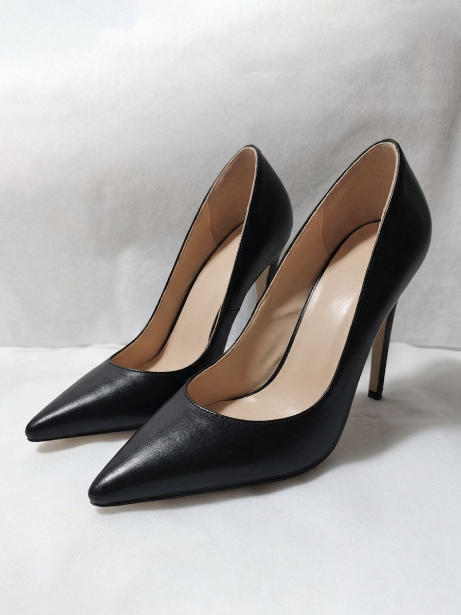レディース向けブラックハイヒール ポインテッドトゥ スティレットヒールパンプス