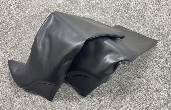 ブラックニーハイブーツ レディース ポインテッドトゥ ウェッジ ニーレングスブーツ