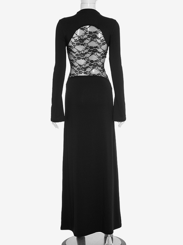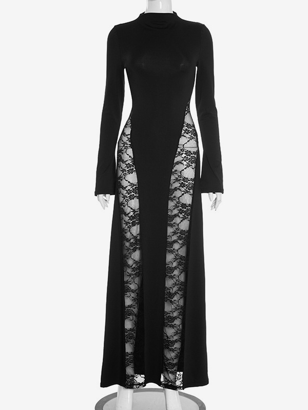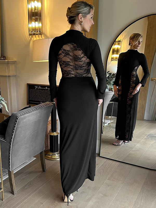 レディース向けモックネックのブラックレースパネルボディコンマキシドレス(2025年)