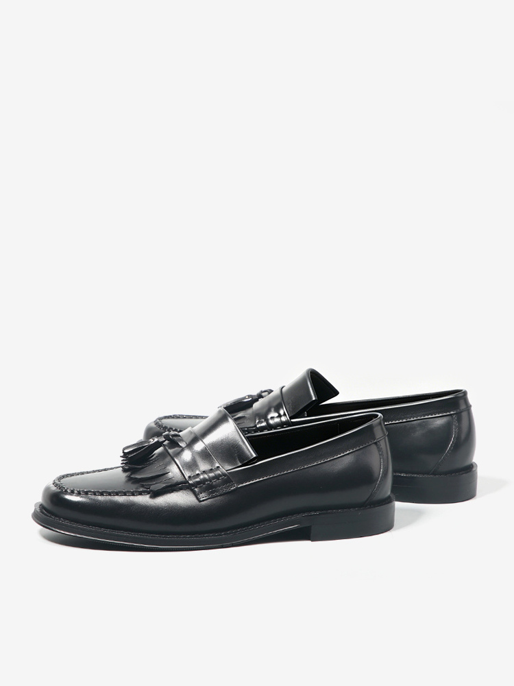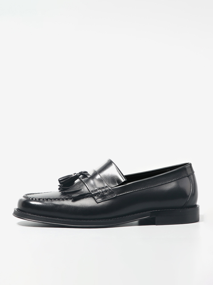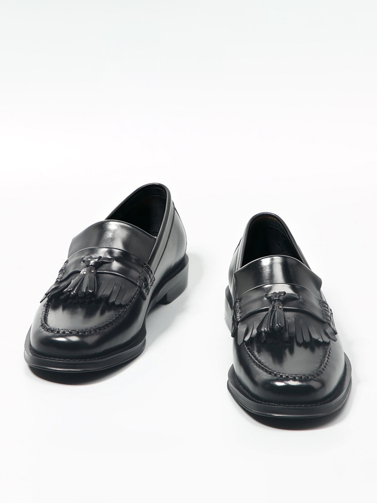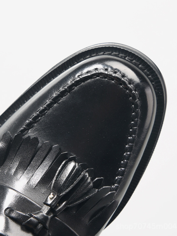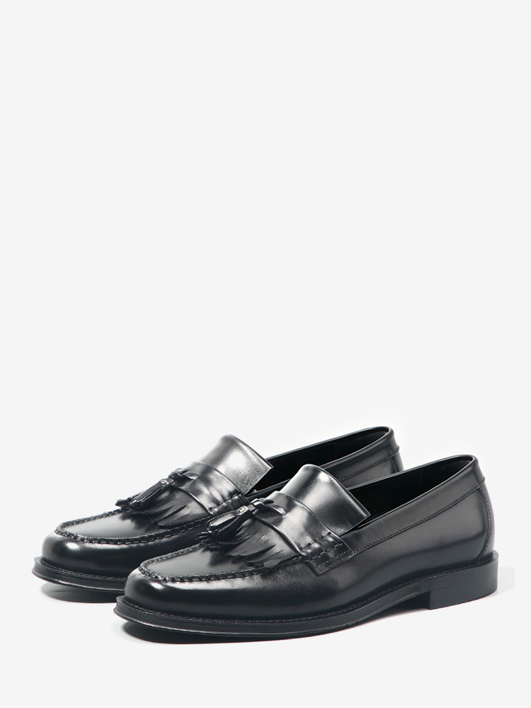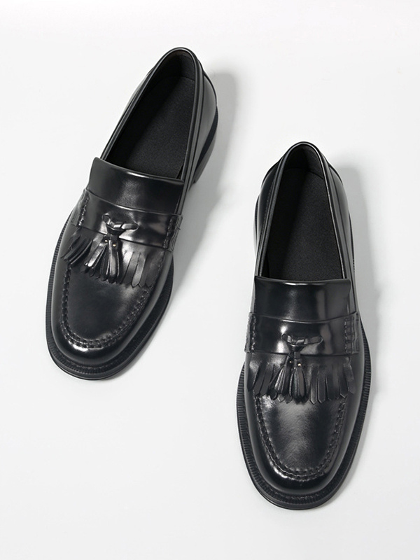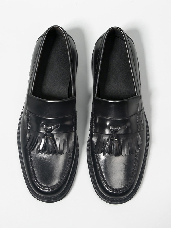 メンズ用ブラックペニーローファー ラウンドトゥ スリッポン ローファー タッセル付き