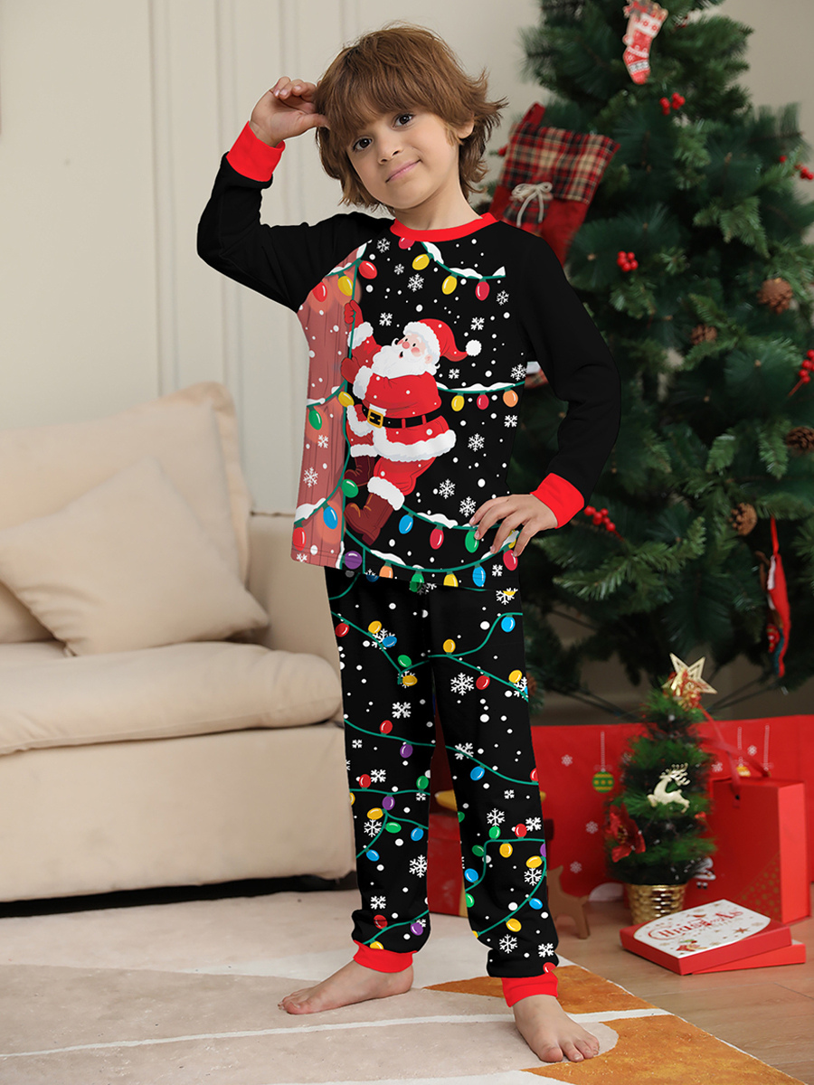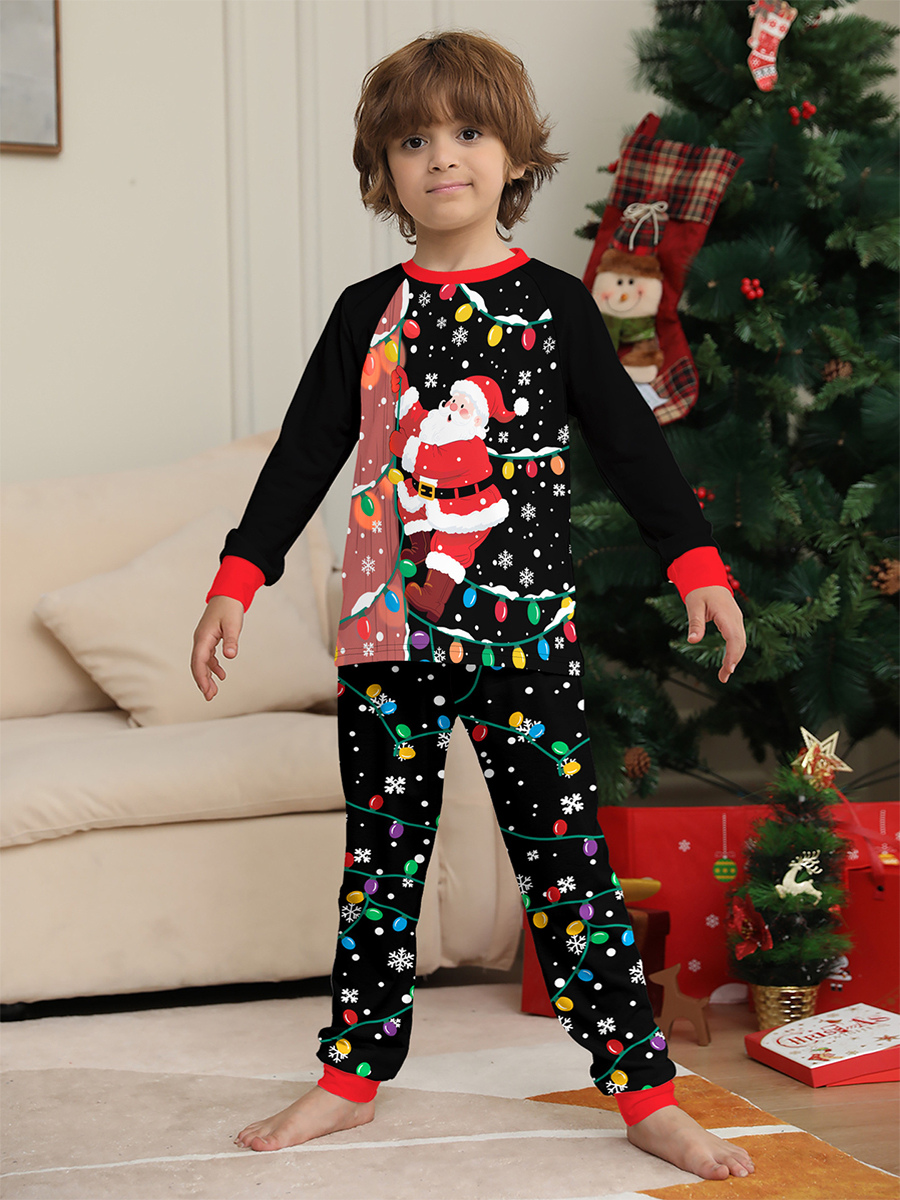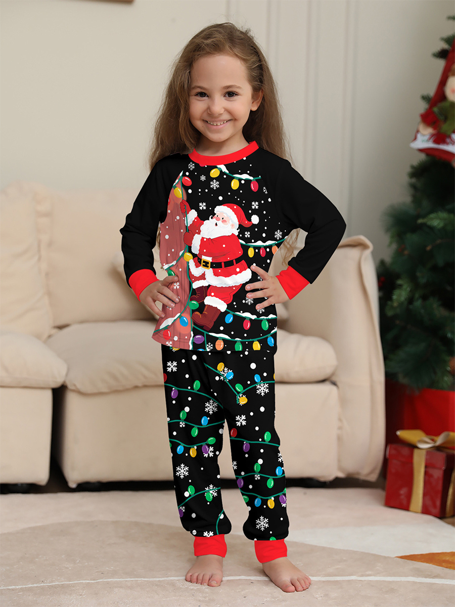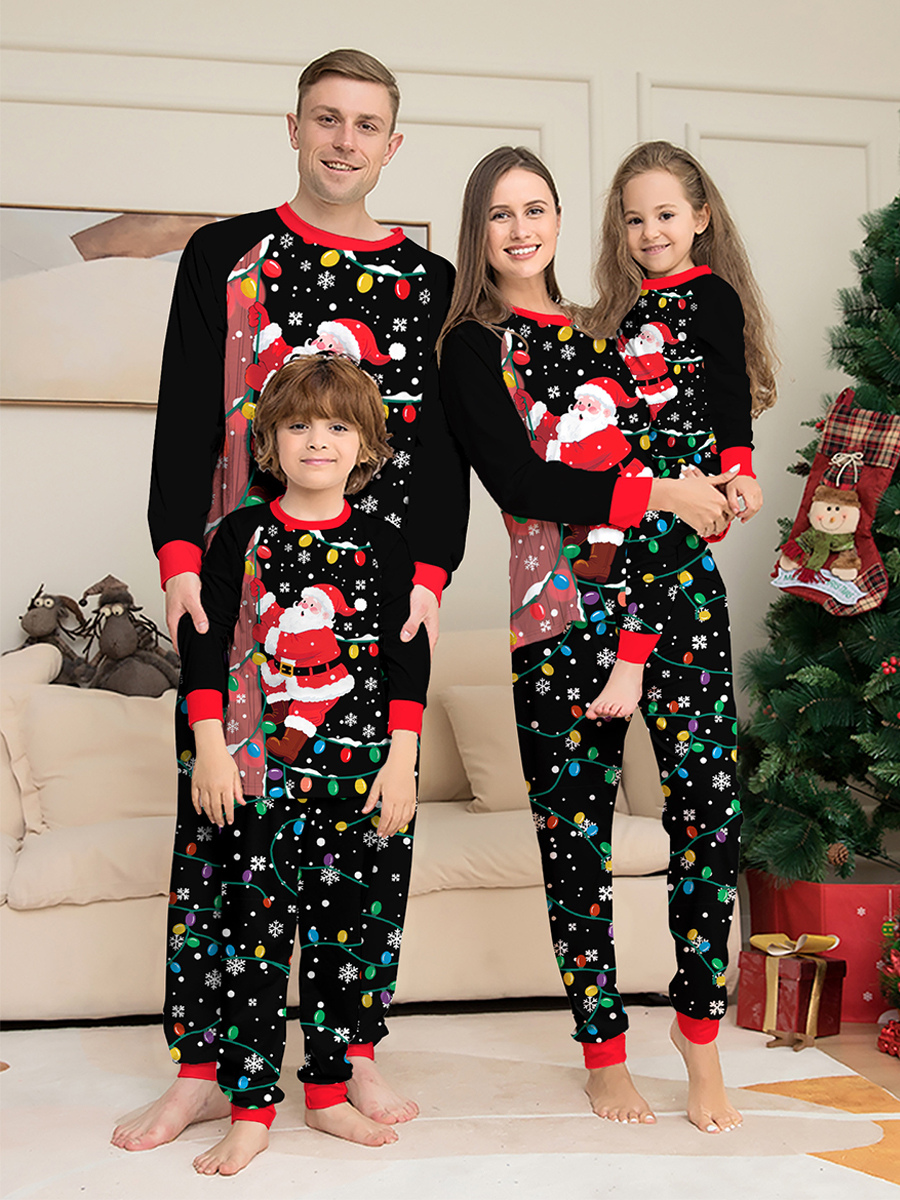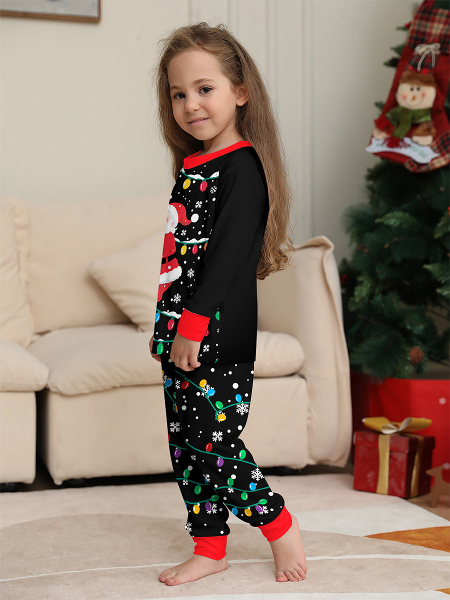 ブラック&レッドのサンタライトプリントファミリークリスマスパジャマホリデーセット 2025