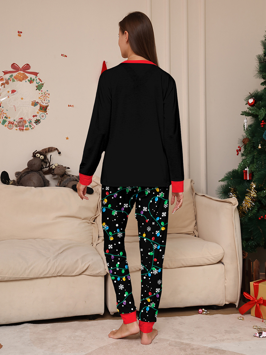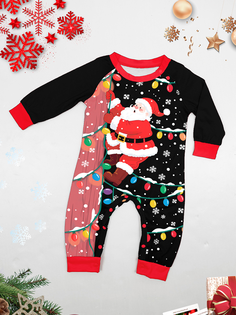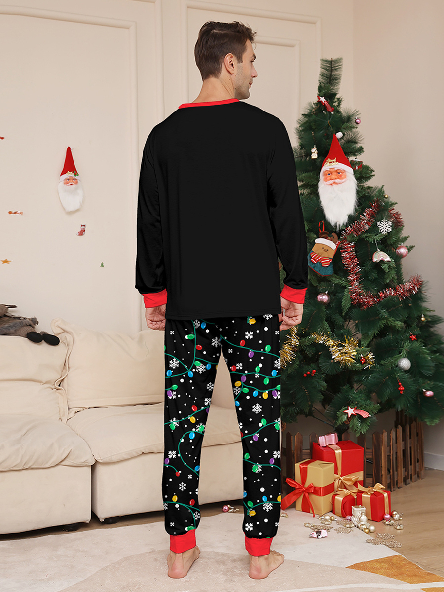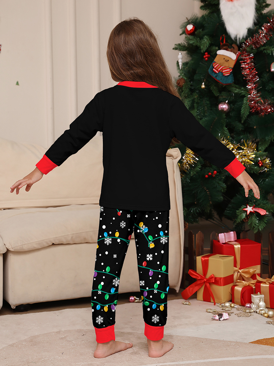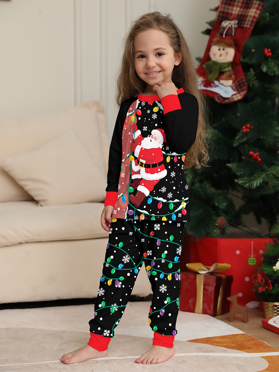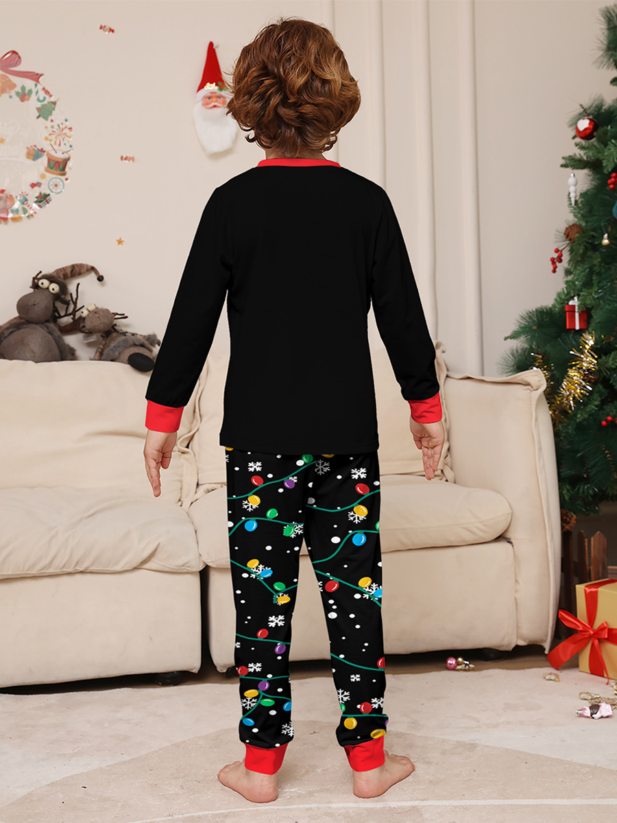 ブラック&レッドのサンタライトプリントファミリークリスマスパジャマホリデーセット 2025