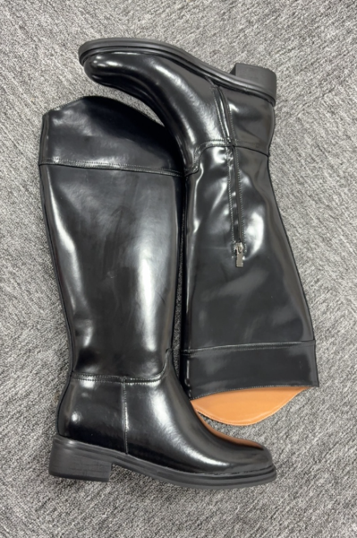 ブラック乗馬ブーツ レディース ラウンドトゥ フラットブーツ
