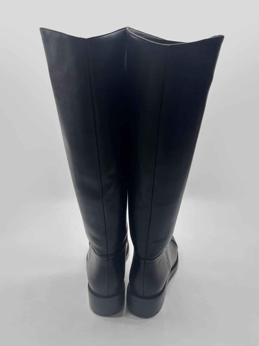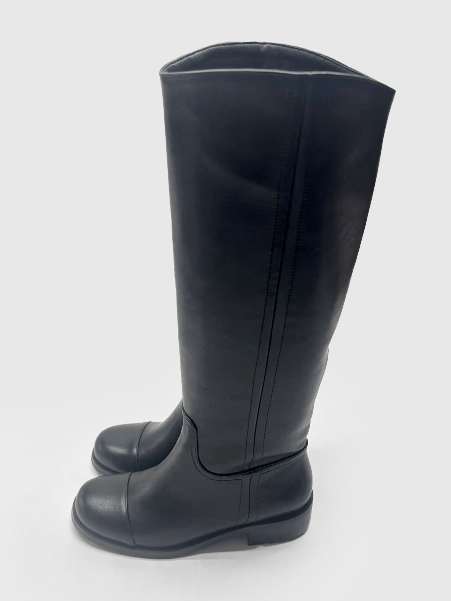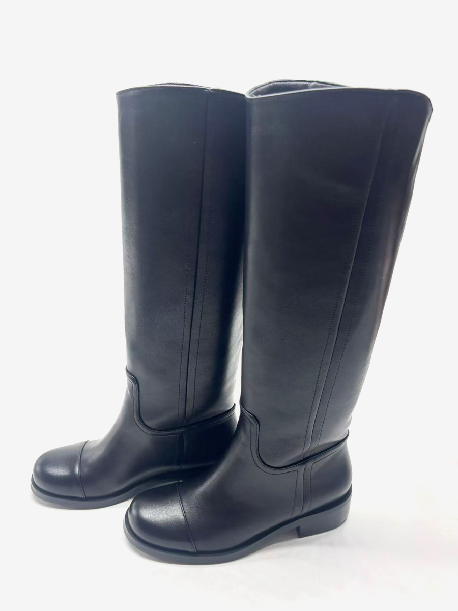 ブラック乗馬ブーツ レディース ラウンドトゥ フラットニーハイブーツ