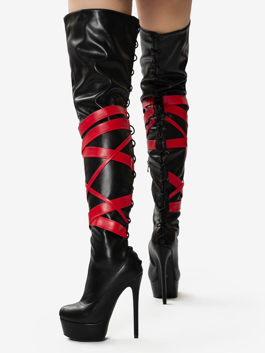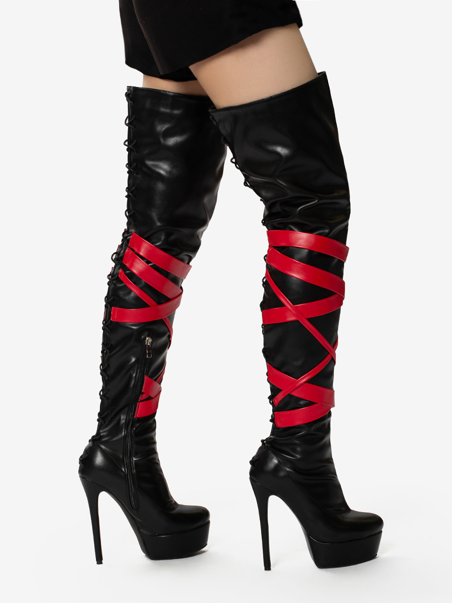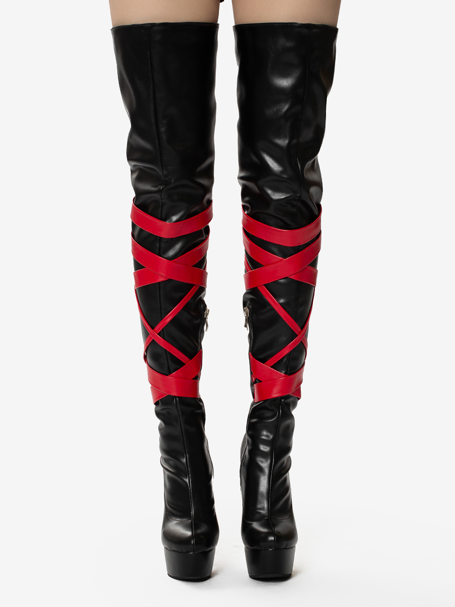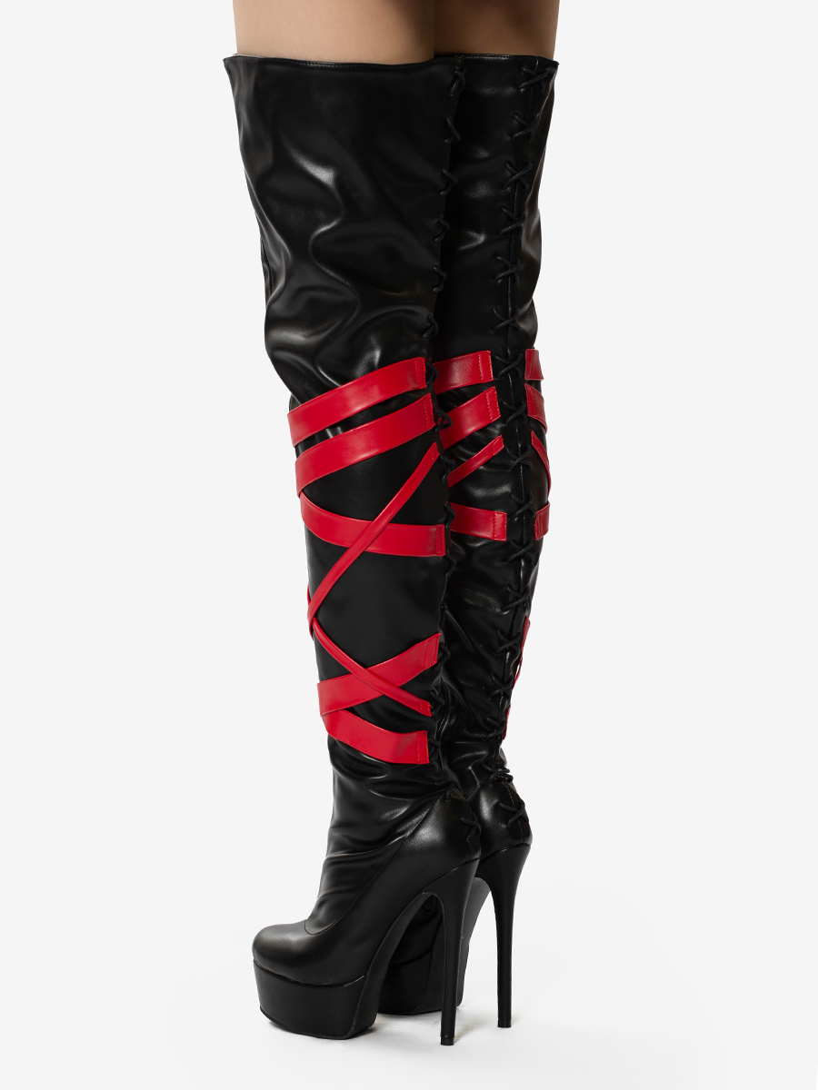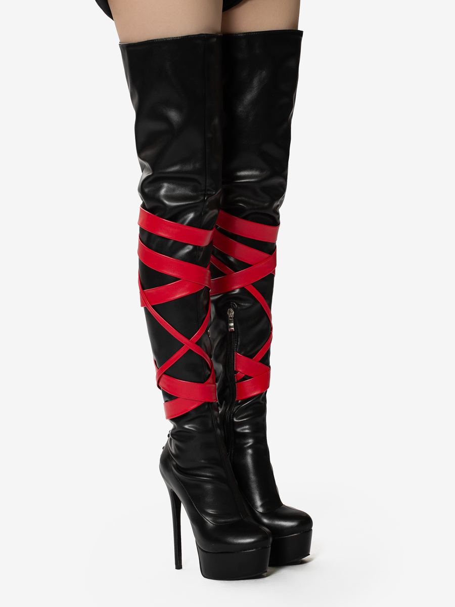 ブラックセクシーブーツ ユニセックス プラットフォーム オープントゥ ハイヒール オーバーニーブーツ