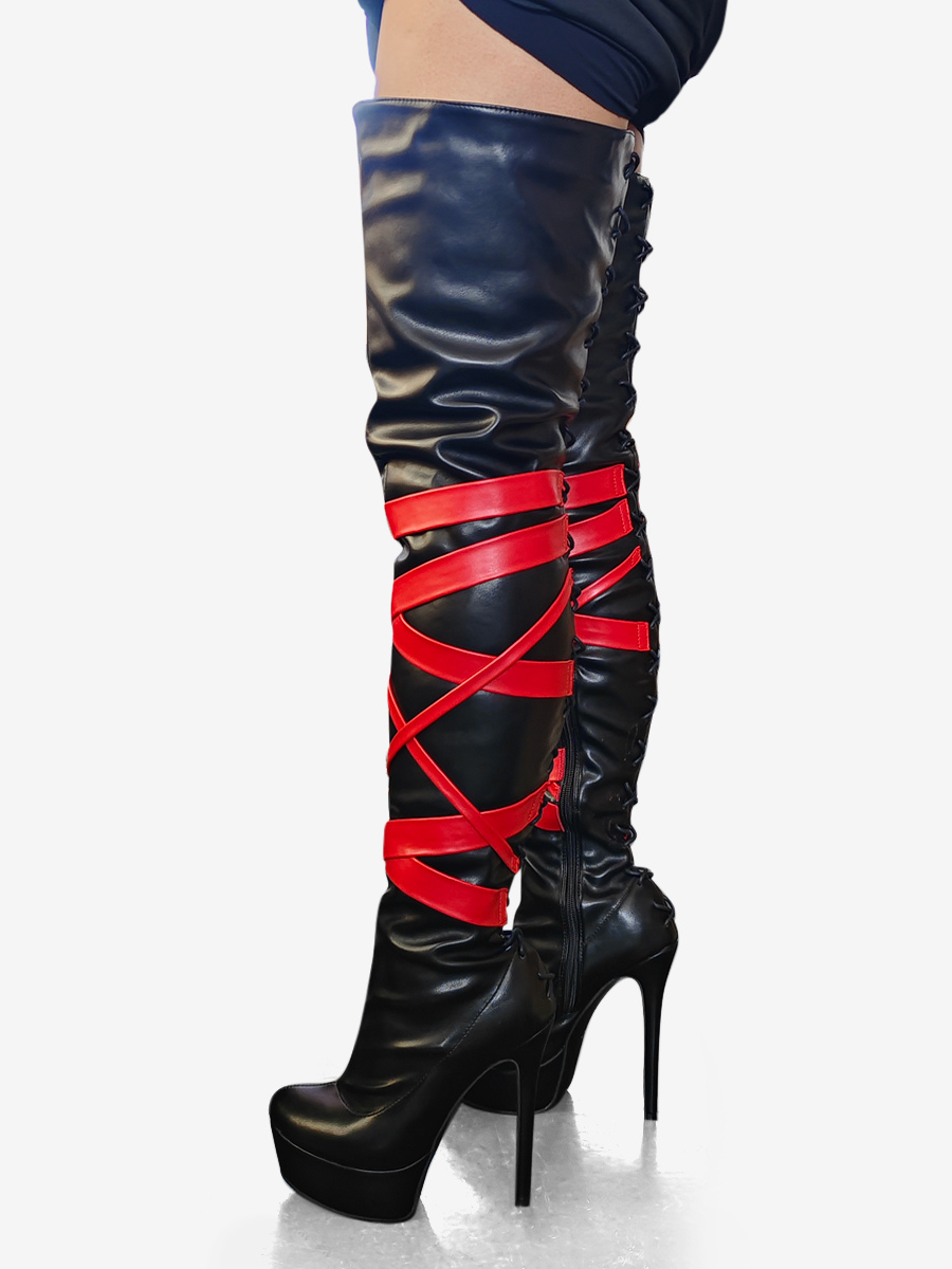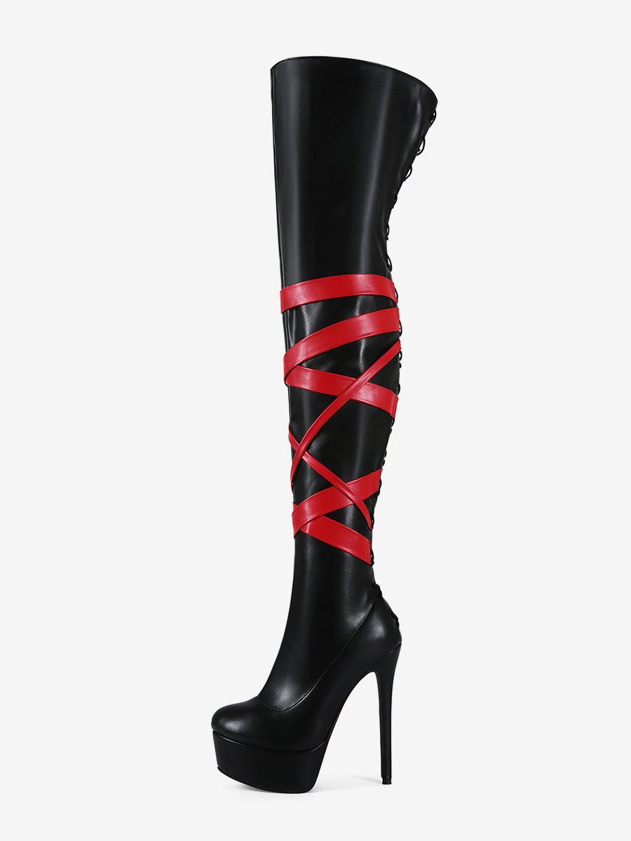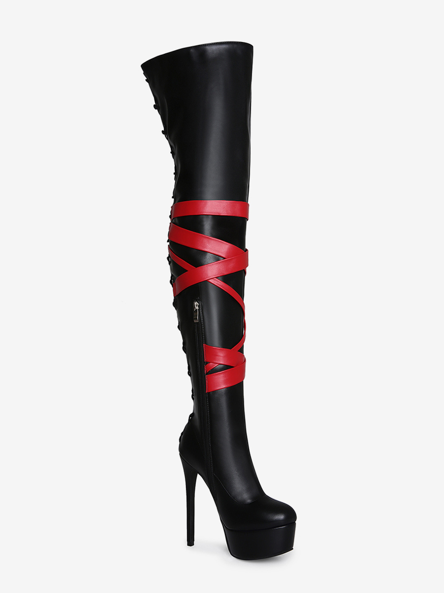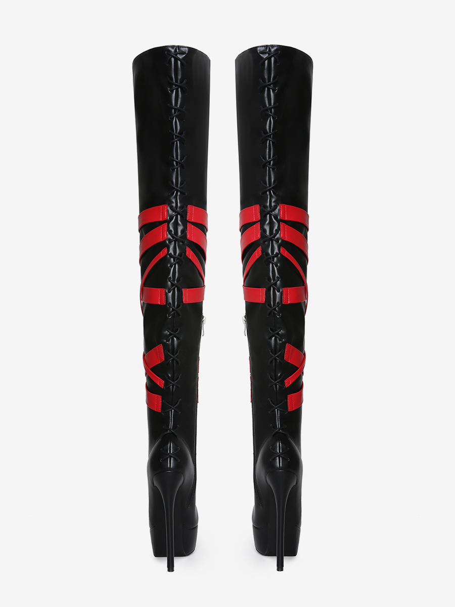 ブラックのセクシーなブーツ レディース プラットフォーム オープントゥ ハイヒール オーバーニーブーツ