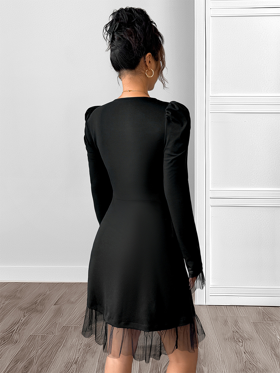 レディース向けブラックスクエアネックAラインミニドレス 2025