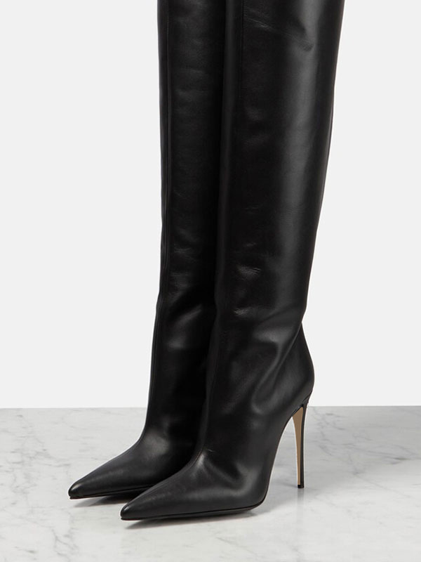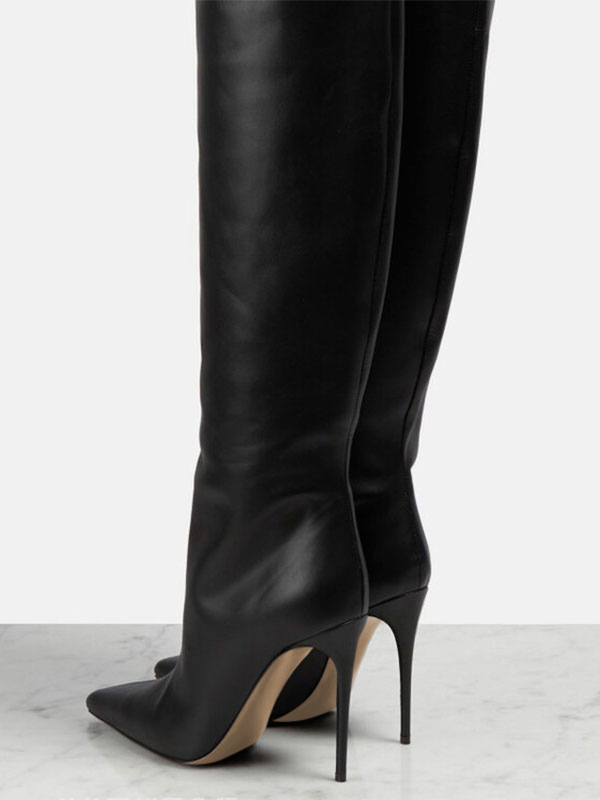 ブラックサイハイブーツポインテッドトゥスティレットヒールオーバーニーブーツ