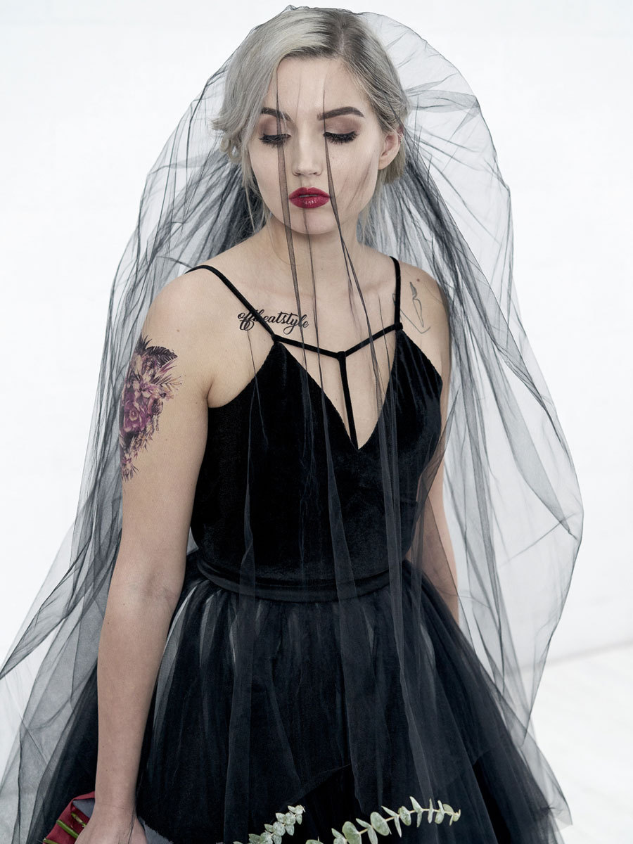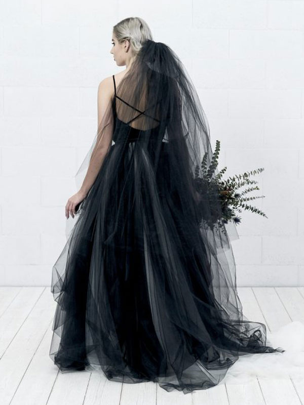 黒のウェディングドレスベロア A ラインノースリーブプリーツトレーンブライダルドレス無料カスタマイズ
