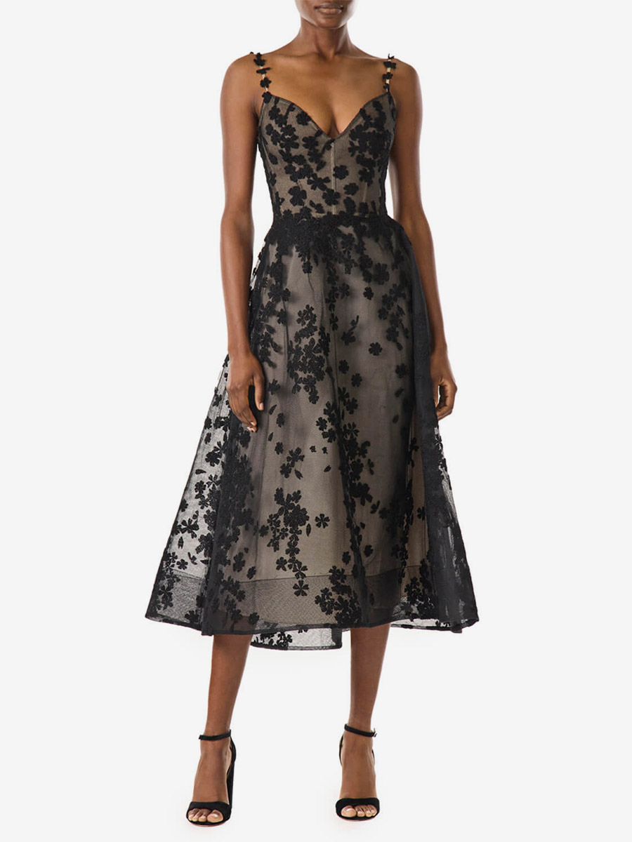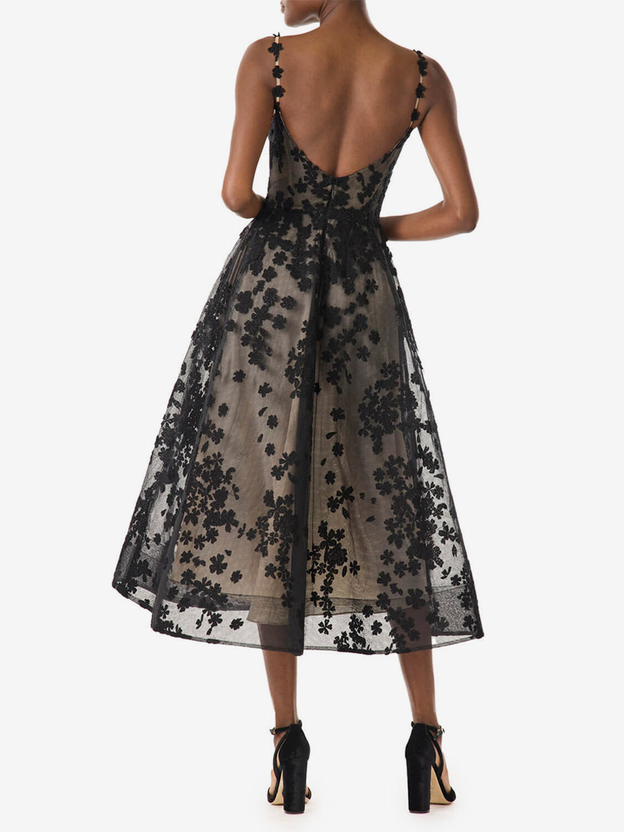 ブラック ウェディングドレス Aライン ノースリーブ レース レース ティーレングス ブライダルドレス