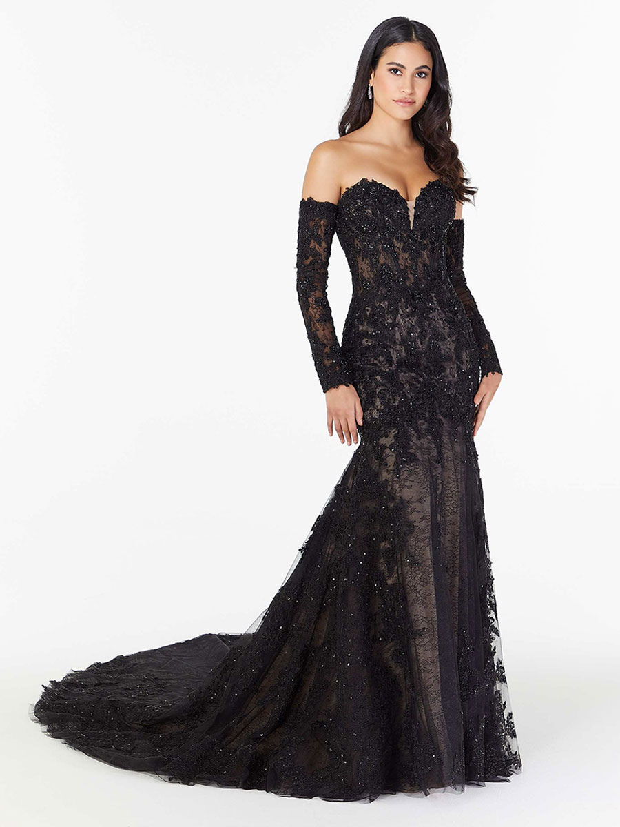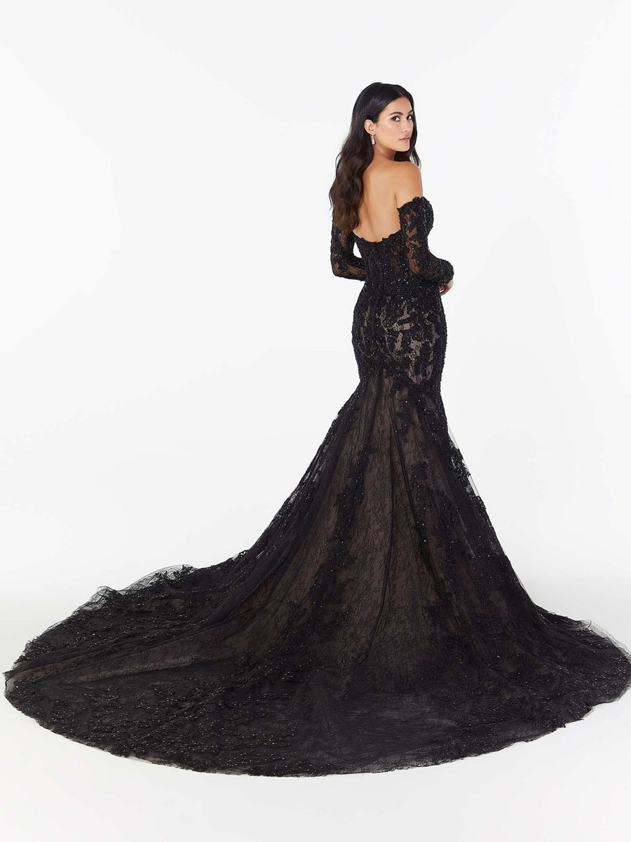 黒のウェディングドレス レース マーメイド 長袖 床の長さのブライダル ドレス無料カスタマイズ