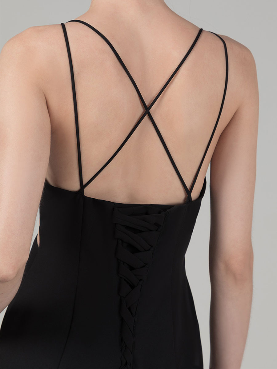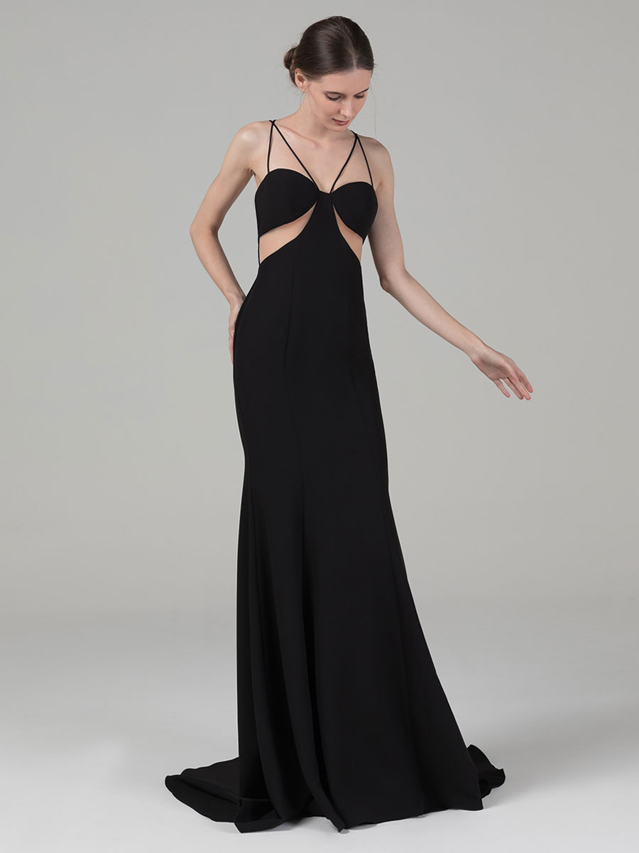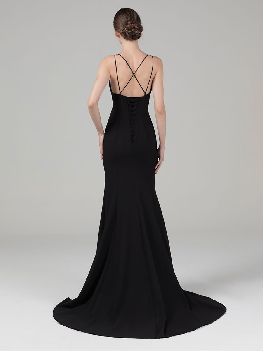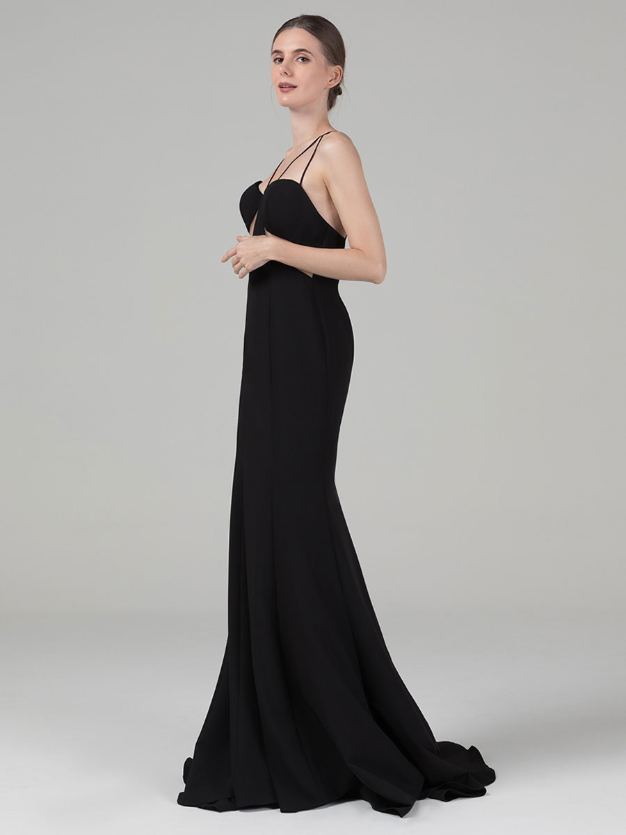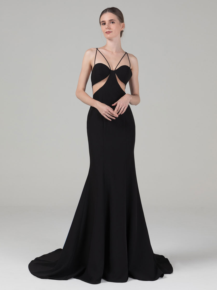 黒のウェディングドレスストレッチクレープマーメイドノースリーブカットアウトトレインブライダルドレス無料カスタマイズ