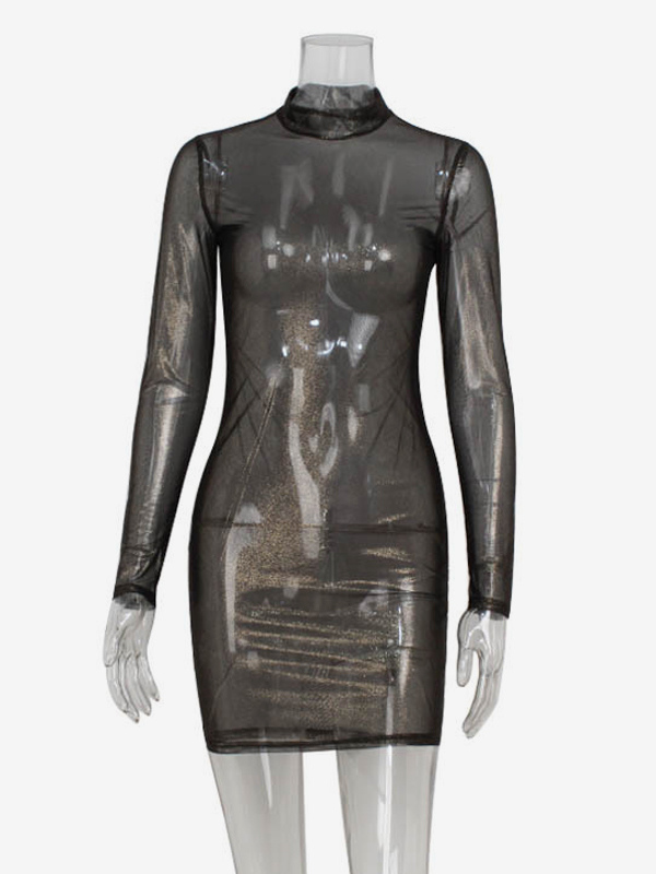 ボディコンドレス ピンク 長袖 セクシー ハイカラー シースドレス シースドレス
