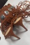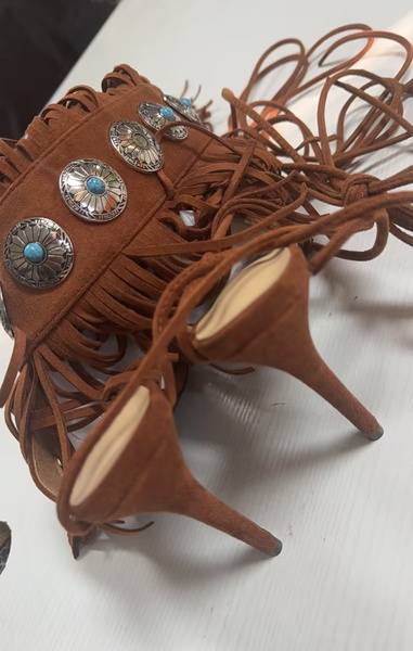 ボヘミアン グラディエーターサンダル レディース オープントゥ スエード ビーズ ハイヒール サンダル シューズ タッセル付き