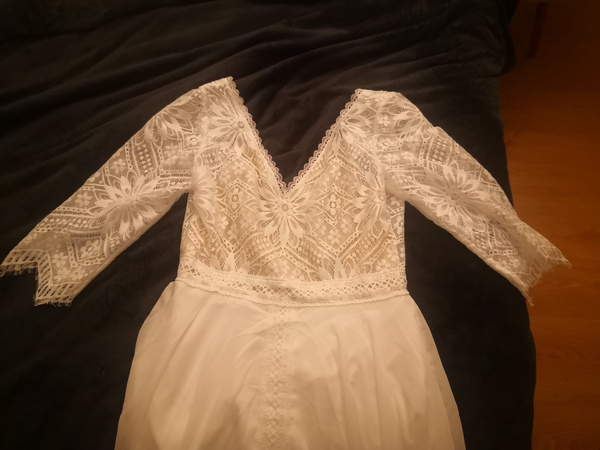 l****lColor:MarfilTalla:EU 42フィット感:ちょうどいいサイズEl vestido es perfecto, precioso y me queda genial, tengo que meterlo un poquito pero estaba entre dos tallas, pero es casi nada, enamorada del vestido voy a estar radiante, los detalles son preciosos. Y viene muy bien con todo los detalles genial cosidos, con botones de ms por si acaso, deseo ponrmelo el dia de la boda2026/2/18