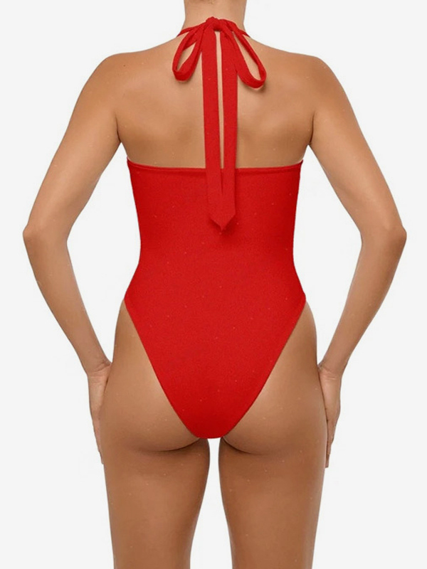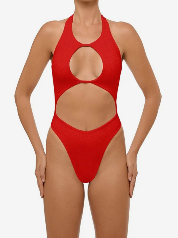 大胆なカットアウトデザインのワンピース水着(女性用) - 赤いホルターネックのセクシーなモノキニ - 夏のビーチプールパーティー2026