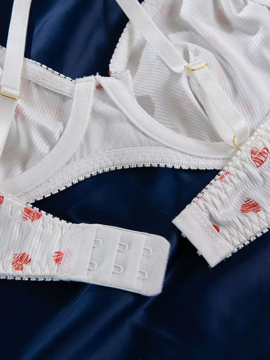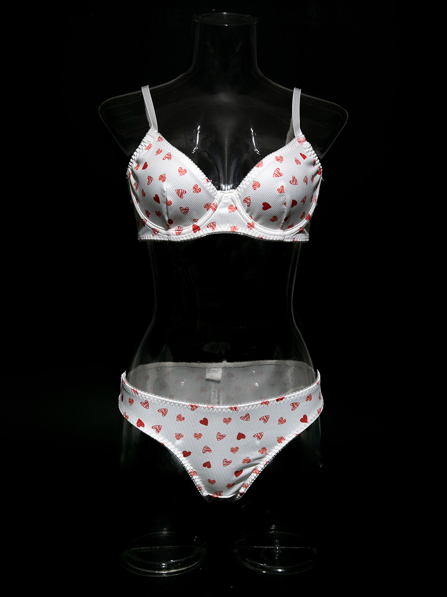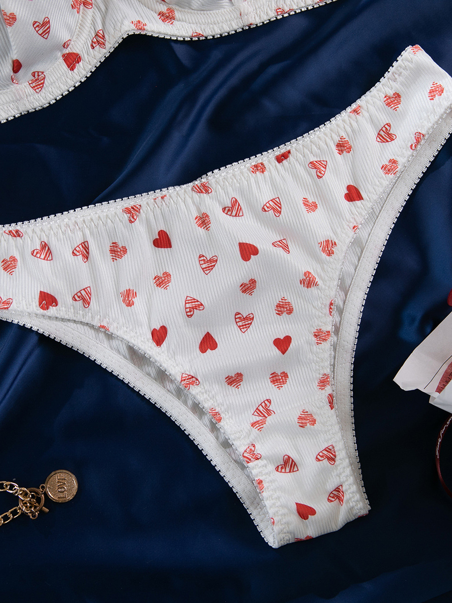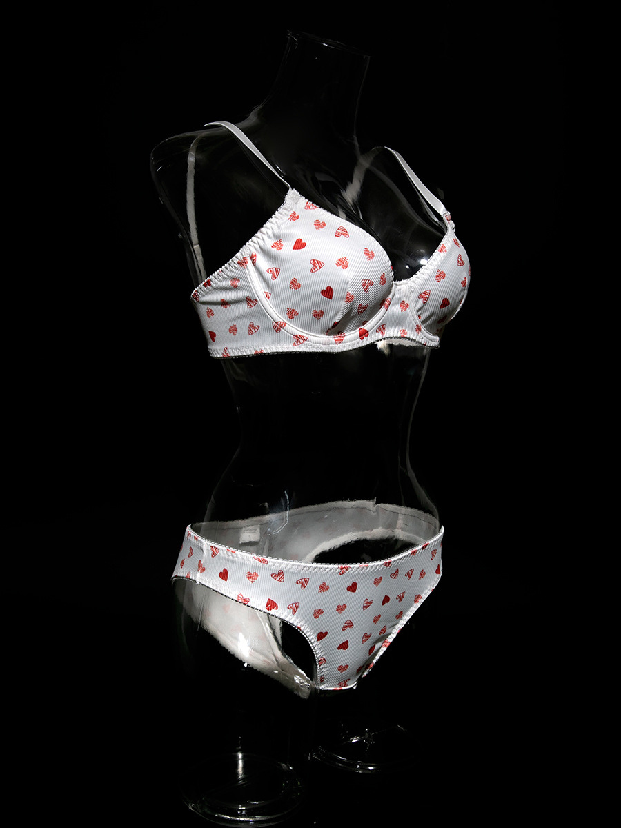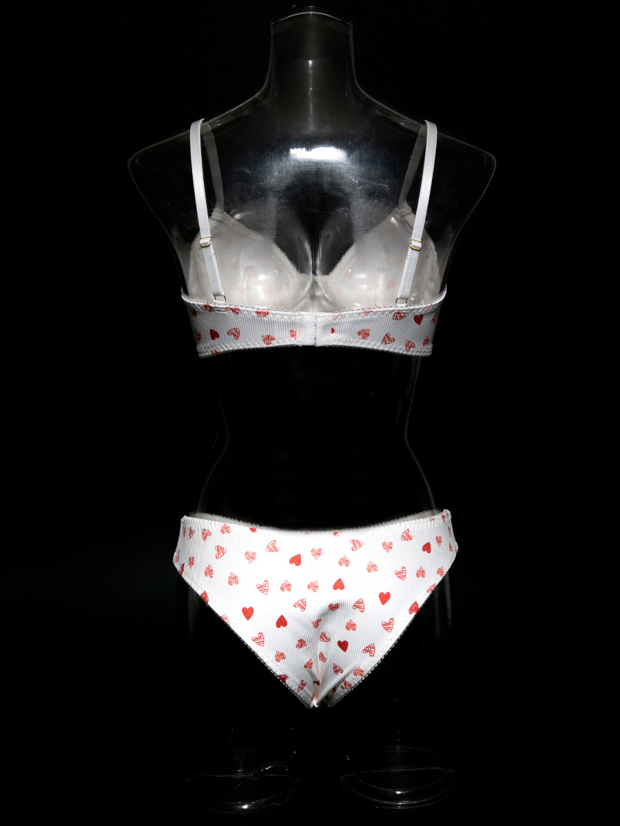 ブライダルランジェリー ハート柄 フルボディ ホワイト ブラジャー&ショーツ 2点セット