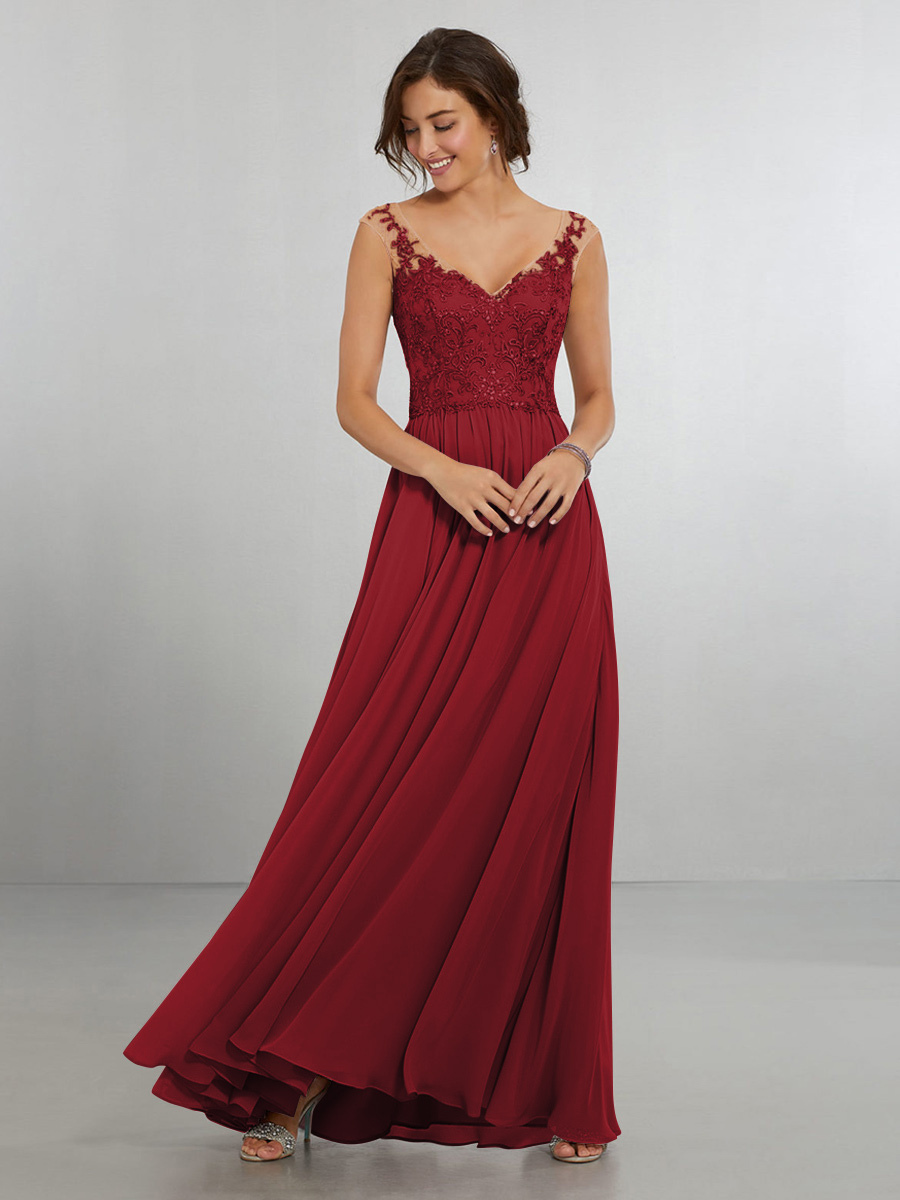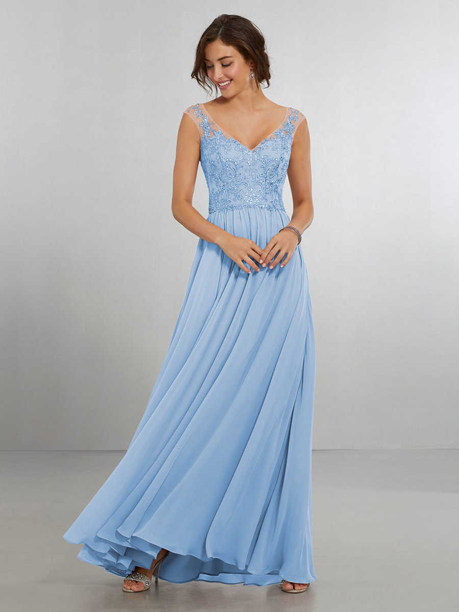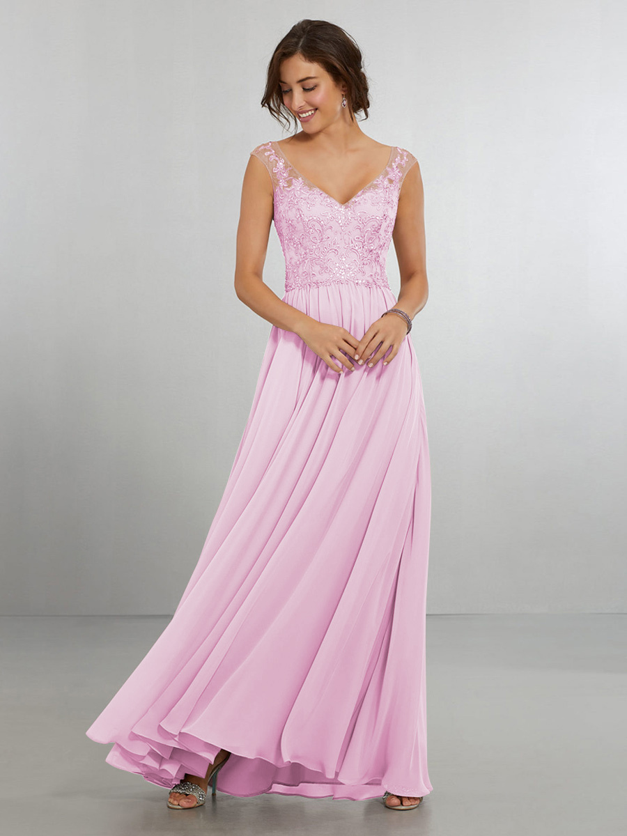 ブライドメイドドレス シフォン Aライン マキシレングス ウェディングパーティードレス
