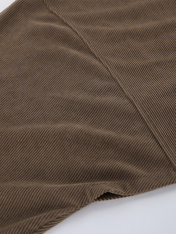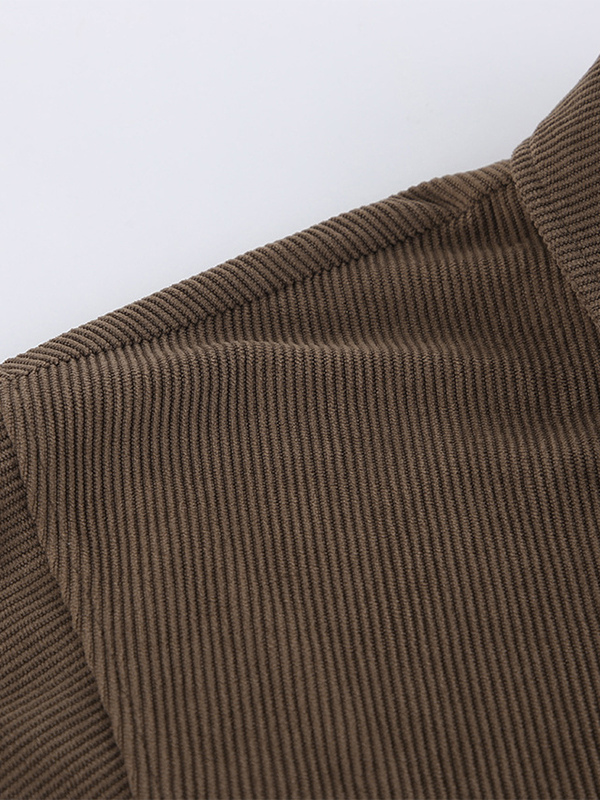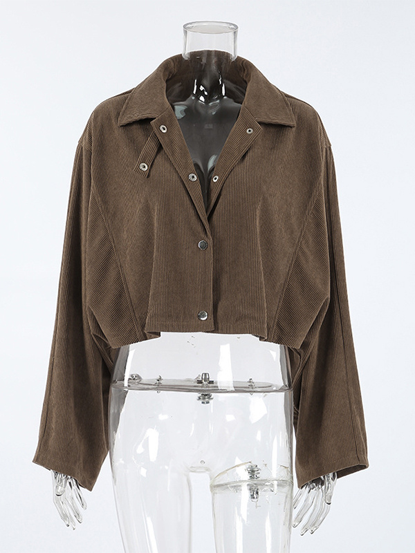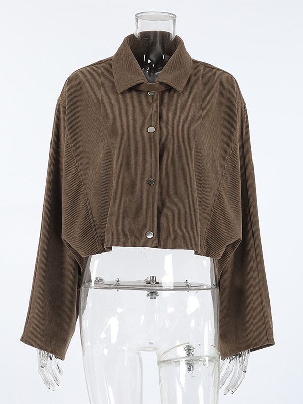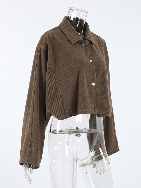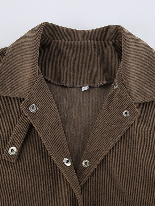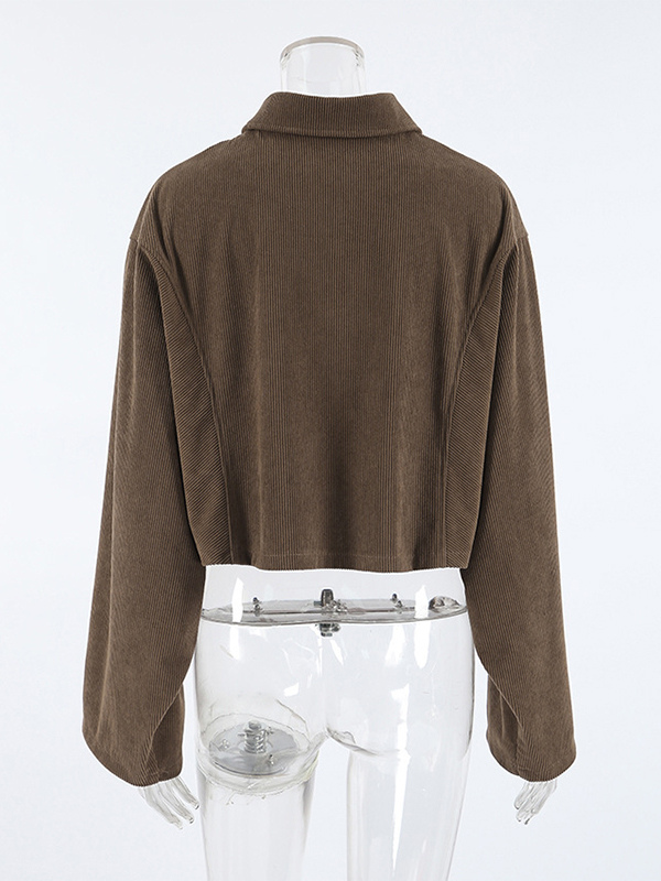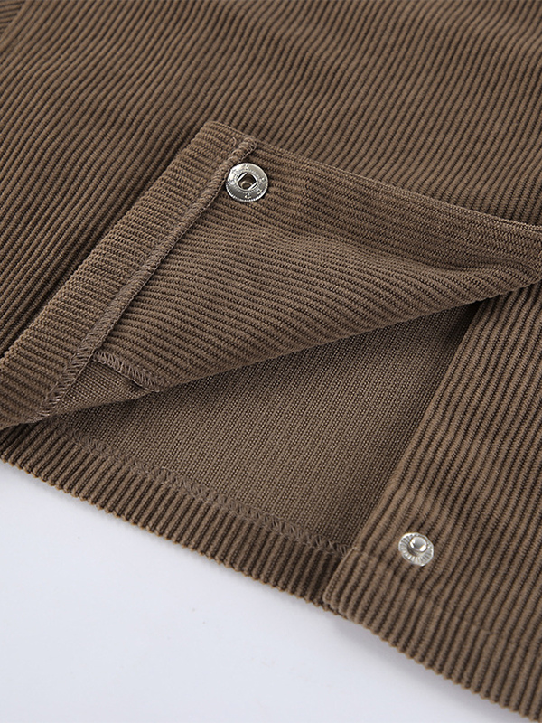 ブラウンコーデュロイのレディースクロップドジャケット - オーバーサイズユーティリティトップ - マイラールスタイルのストリートウェアカジュアルデイリーアウトフィット2026