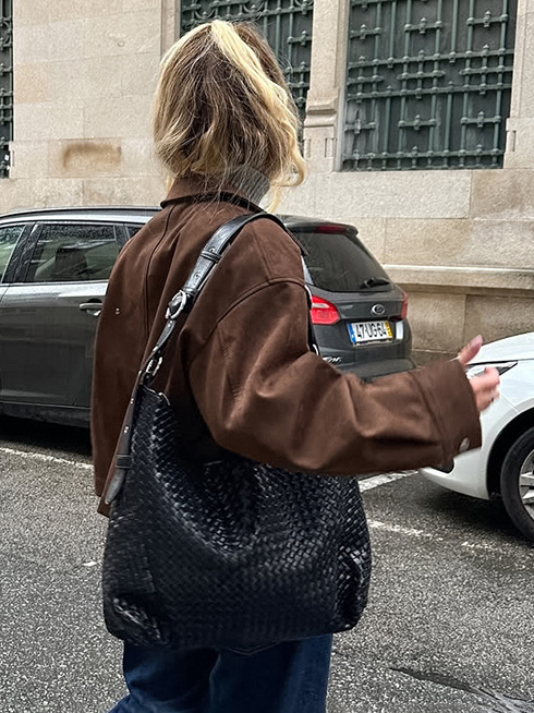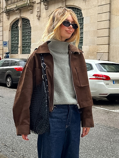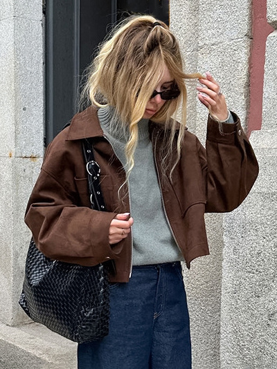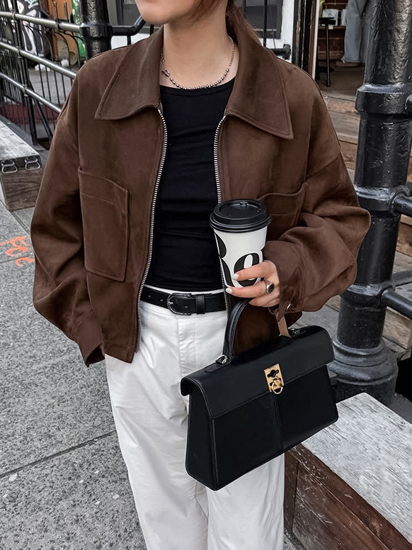 ブラウンスエード クロップド丈 ジップアップジャケット(ポケット付き、レディース 2025年)