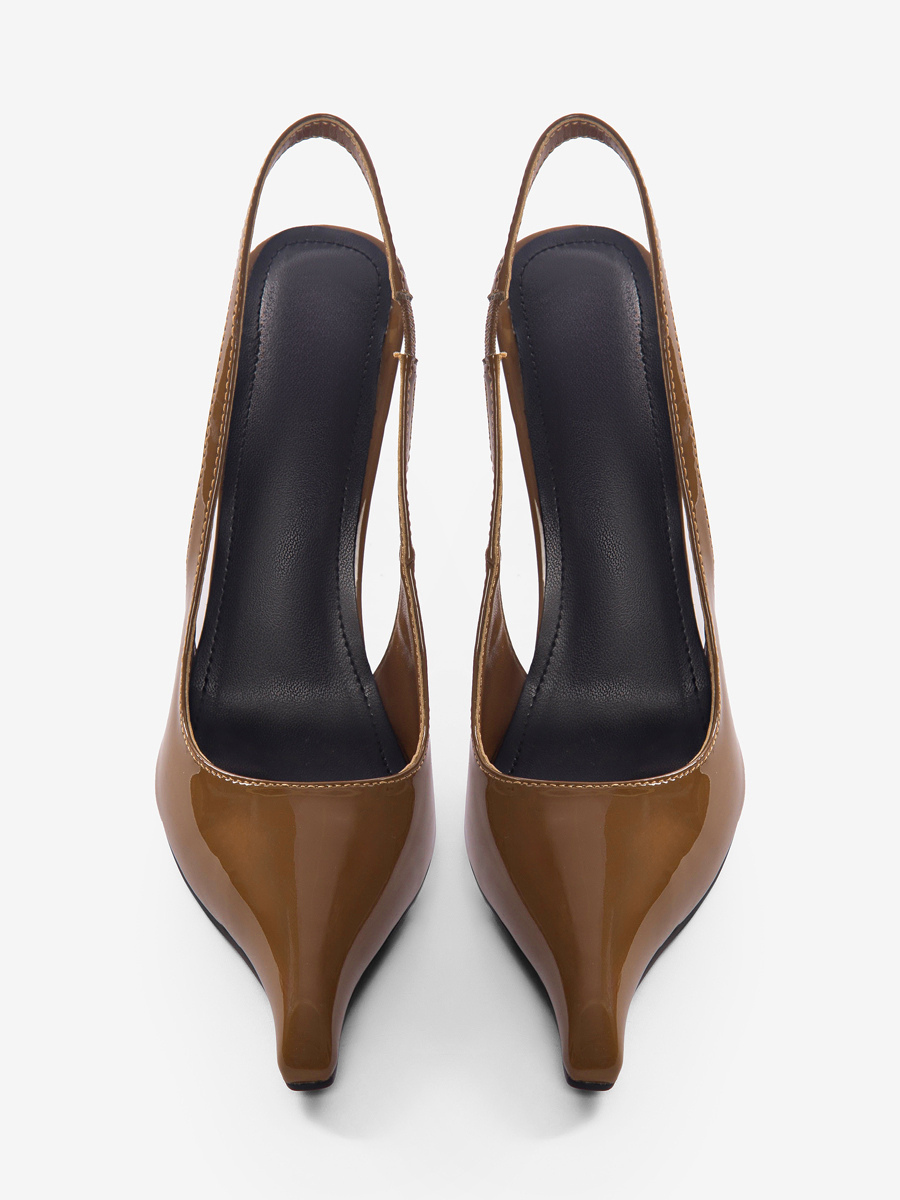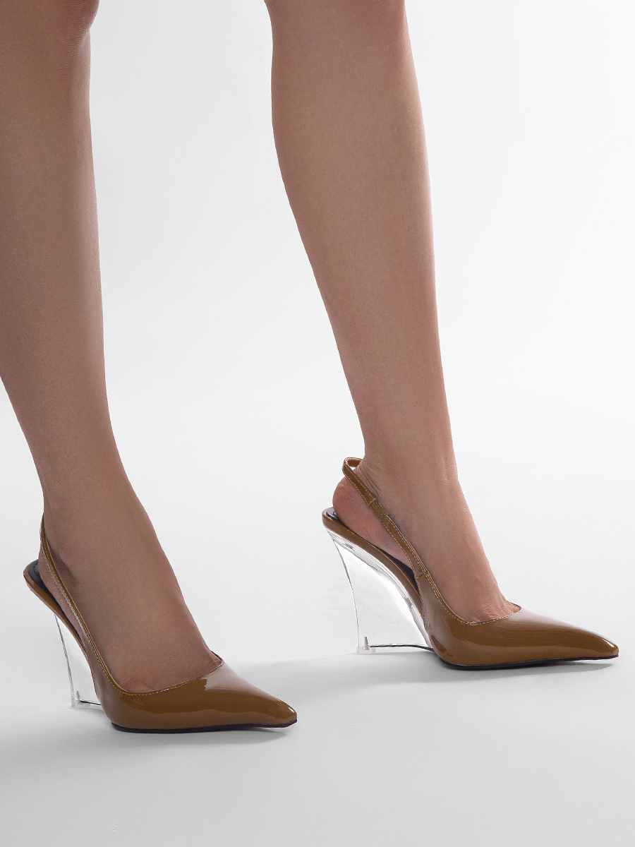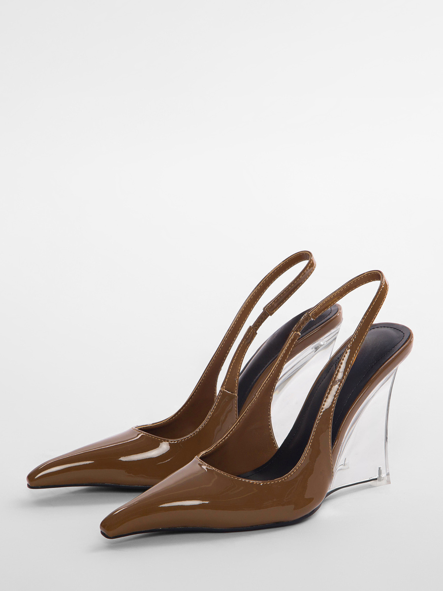 バーガンディ ウェッジパンプス ポインテッドトゥ スリングバック ウェッジ レディース