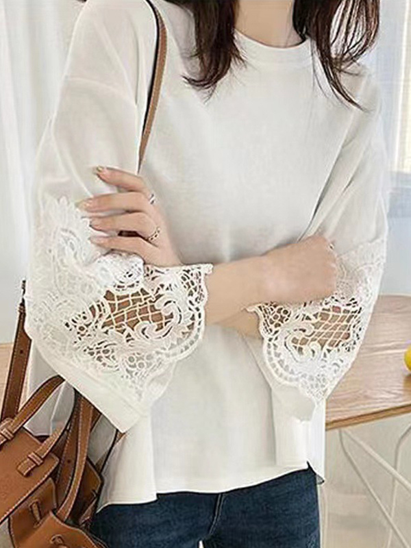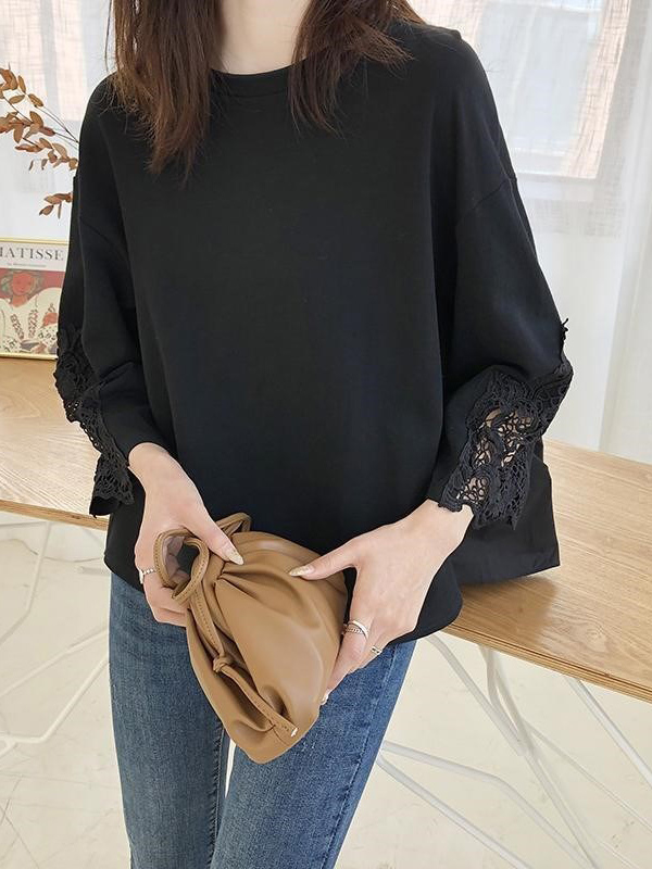 衿型 ラウンドネック 装飾 レース, 透かし彫り