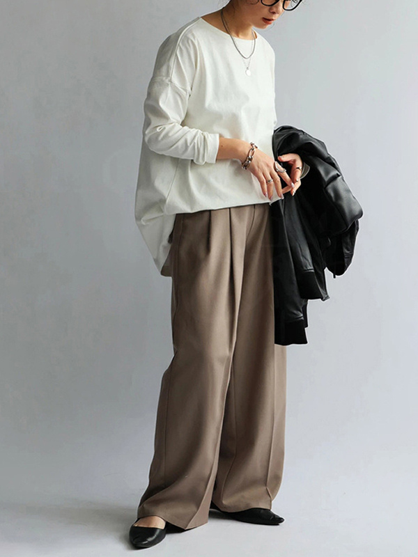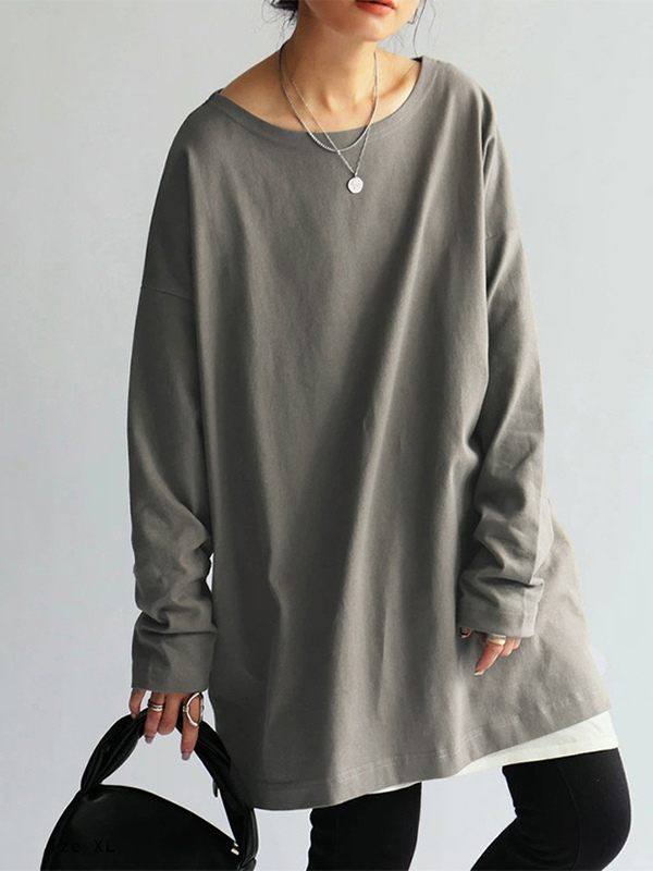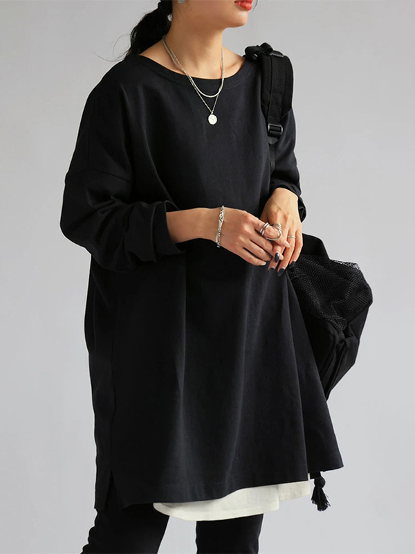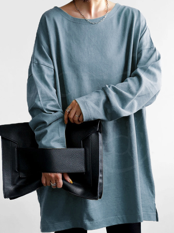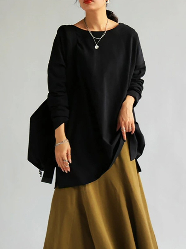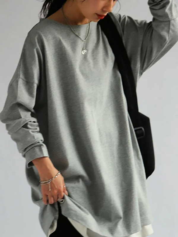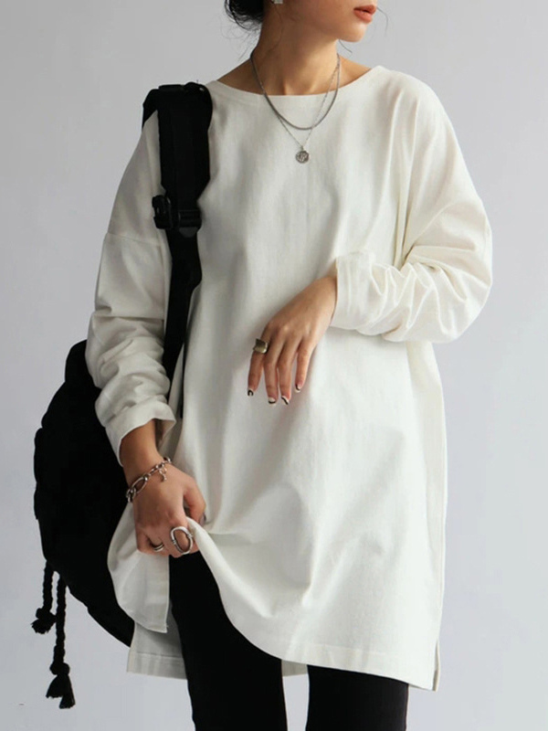 カジュアルジュエルネックホワイトロングスリーブスプリットフロントトップチュニックトップスレディースファッション