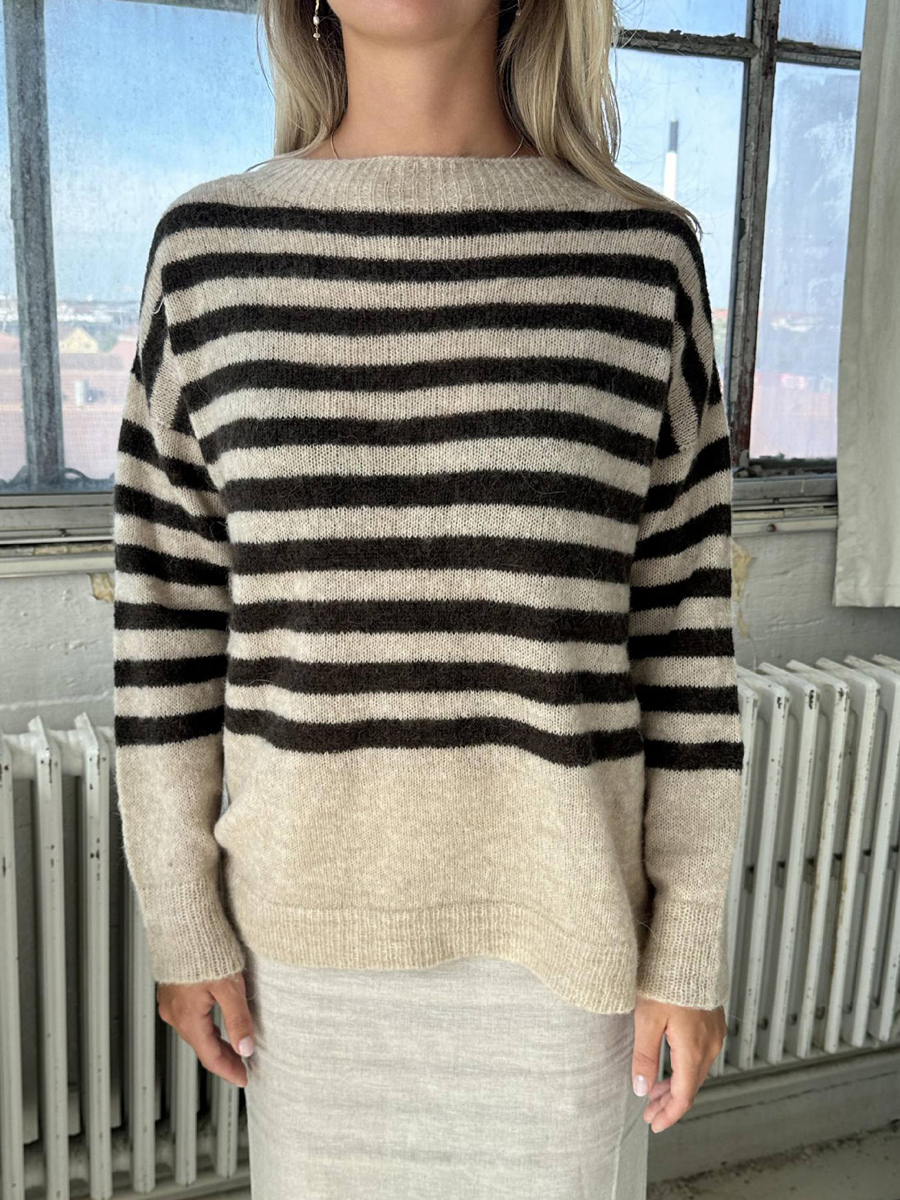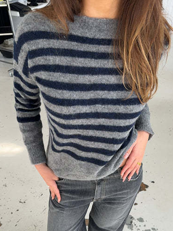 カジュアルストライプニットセーター ルーズフィット クルーネック プルオーバー レディース 2026