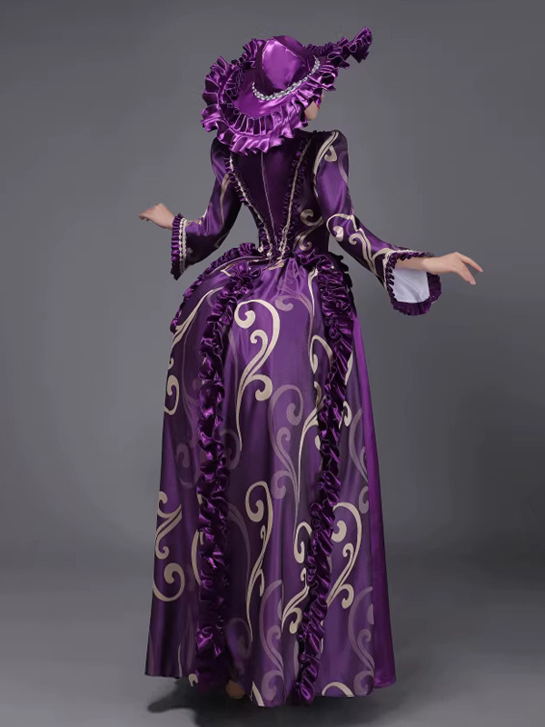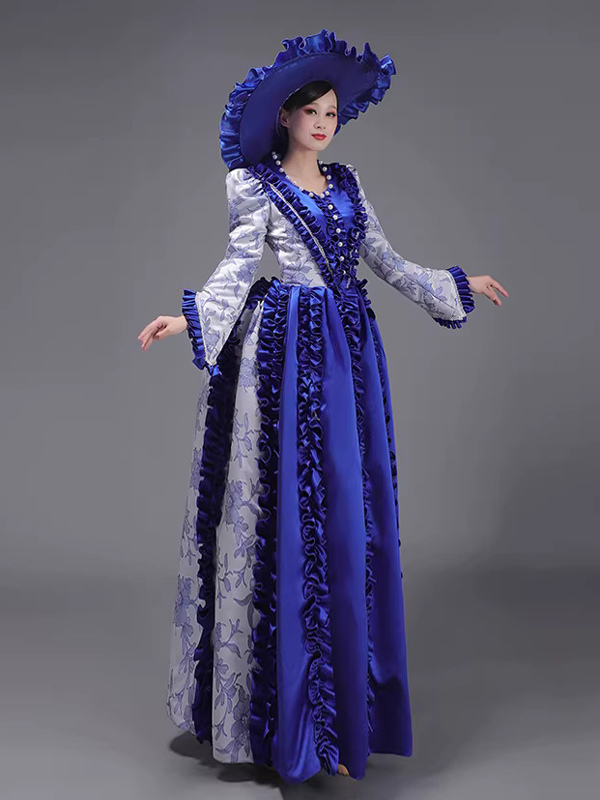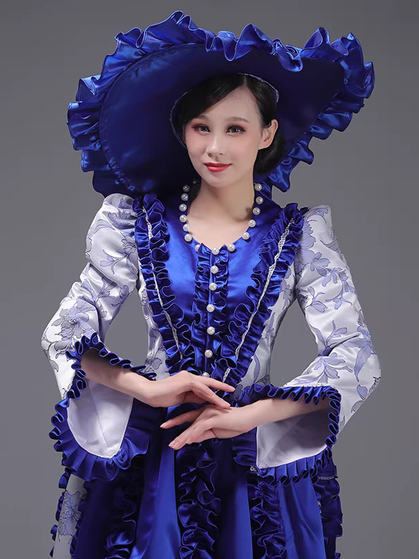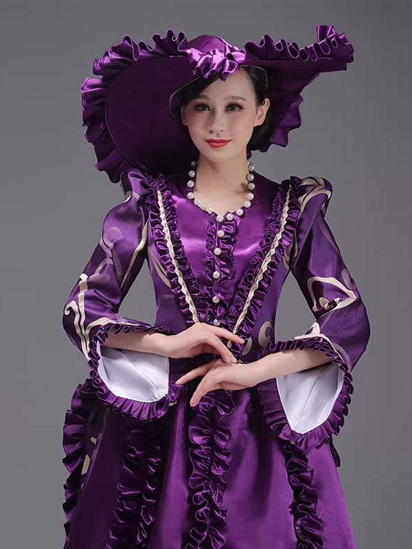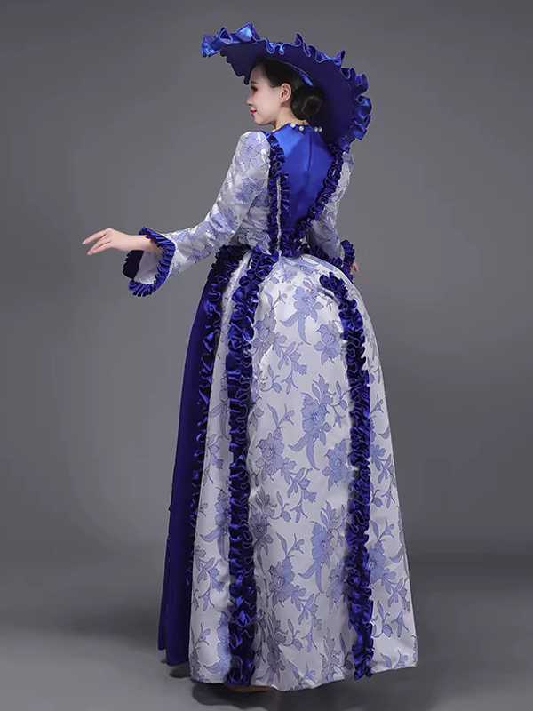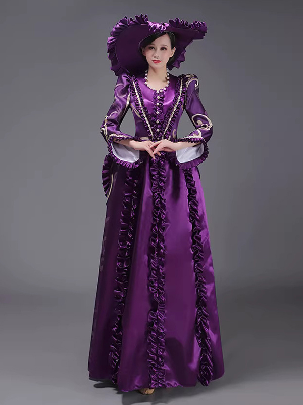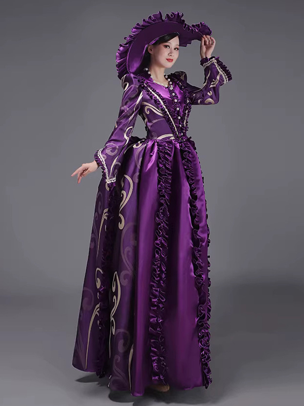 シャンパン バッスル ヴィクトリアン ドレス パッド入り ショルダー 長袖 ポリエステル エレガント ボール レトロ ドレス 帽子付き