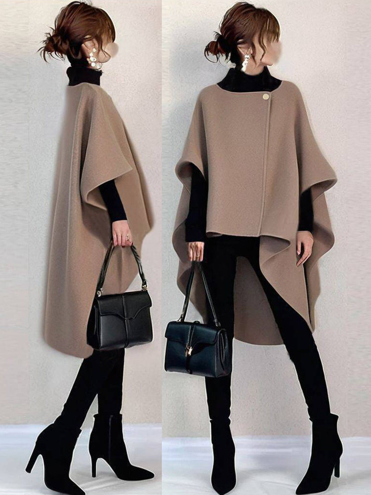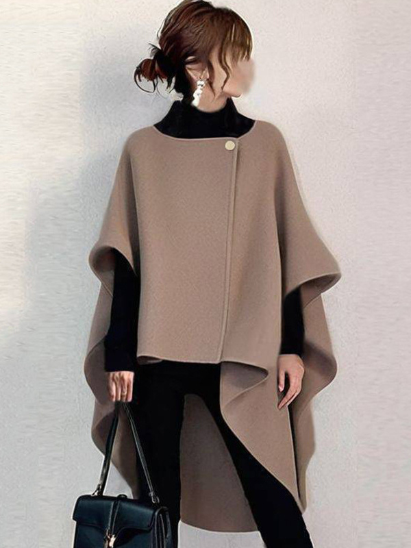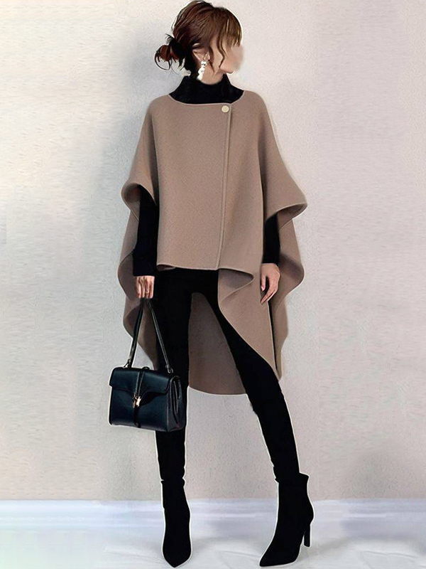 シックなデザインのネックラインのブラウンのハーフスリーブハイローデザイントップスチュニックトップスレディースファッション