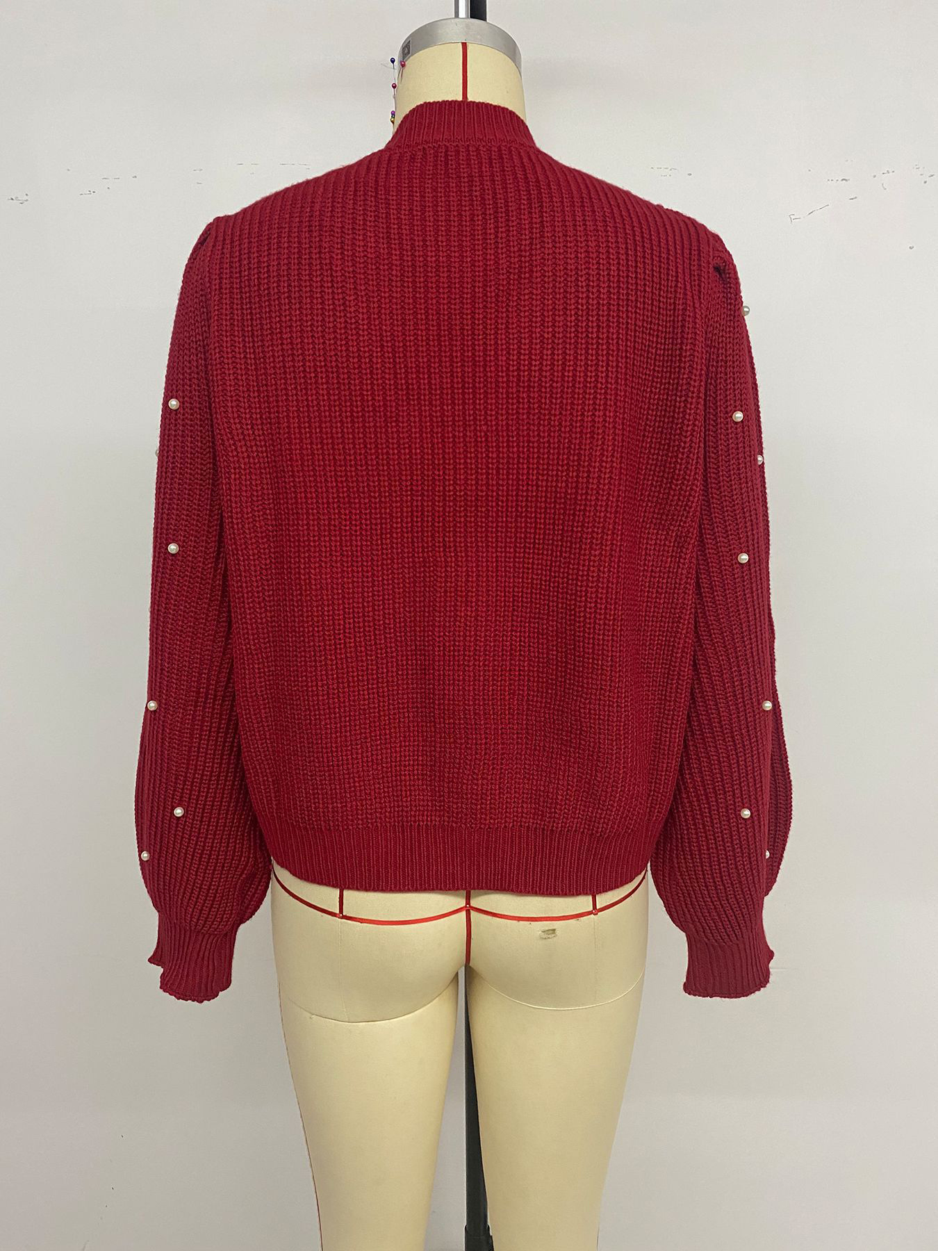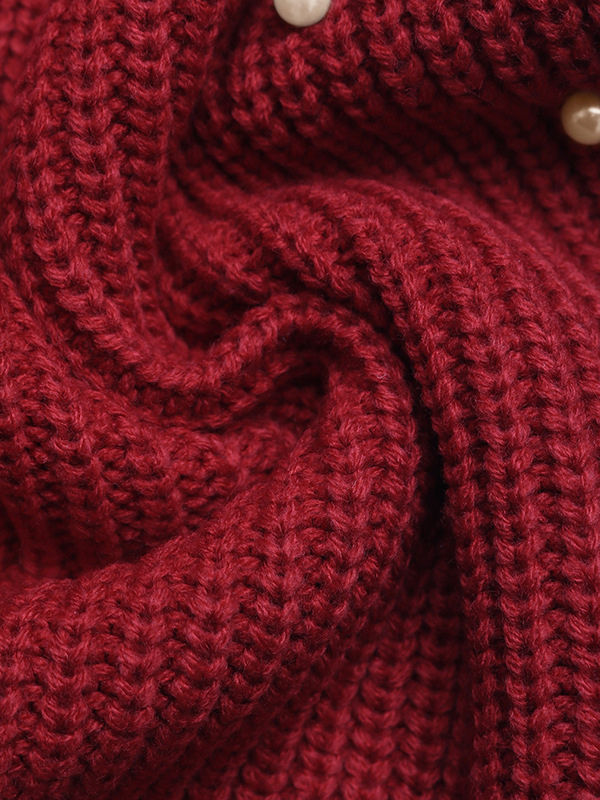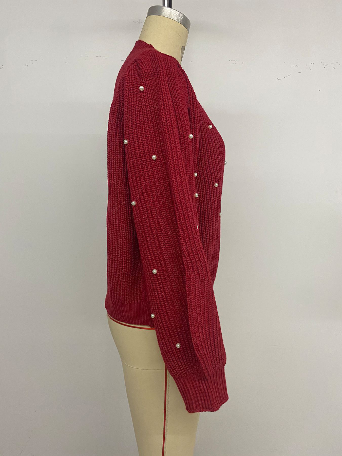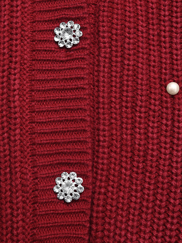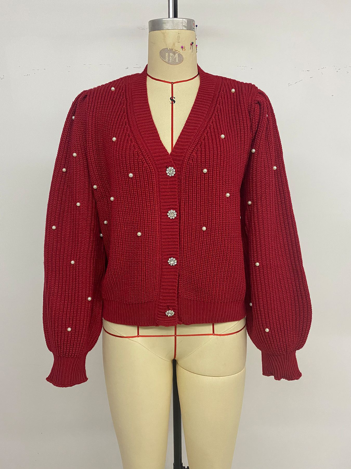 Vネックとバルーンスリーブのクリスマスレッドカーディガン(レディース用、2025年)