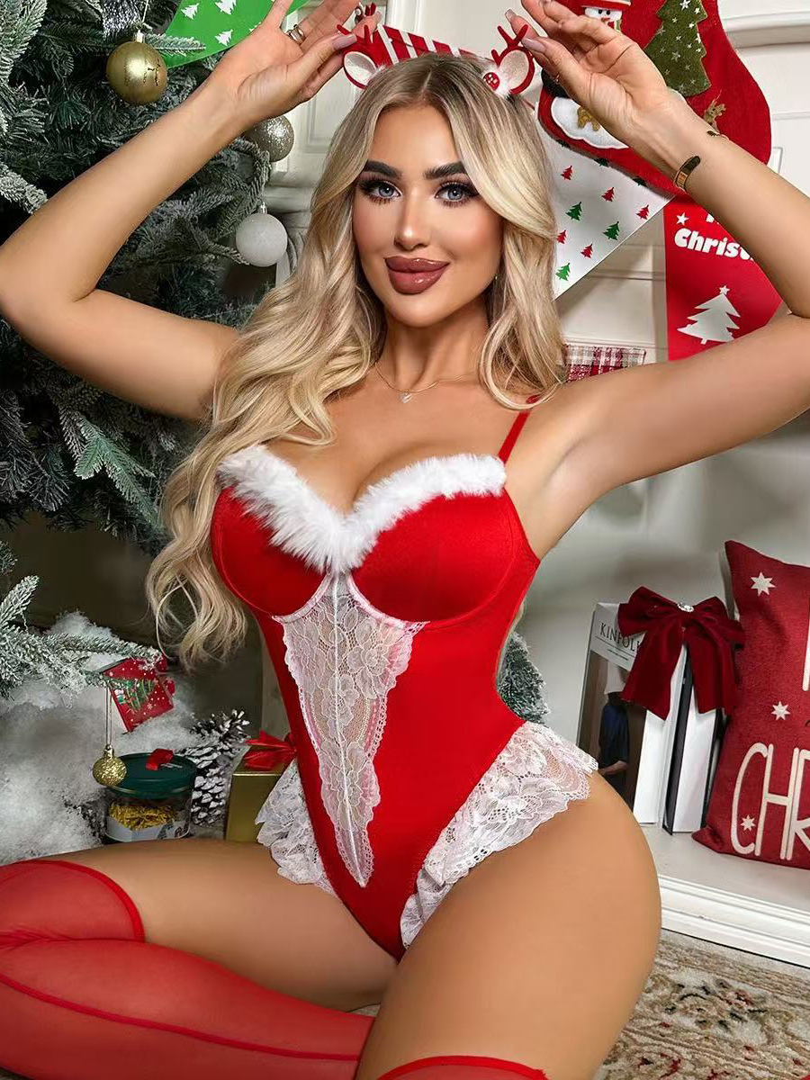 クリスマスセクシーコスチューム レディース テディ ツートンジャンプスーツ ニーハイソックス付き
