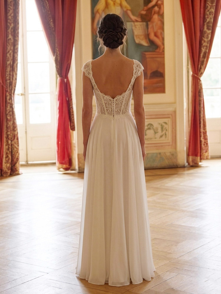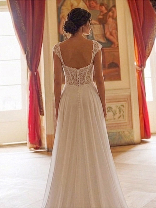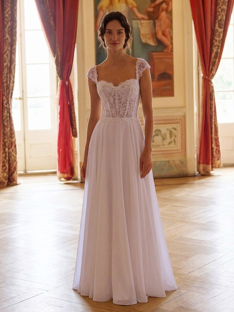 市民結婚式用ドレス Aライン ハートネック ノースリーブ レース ボヘミアン風 ブライダルドレス