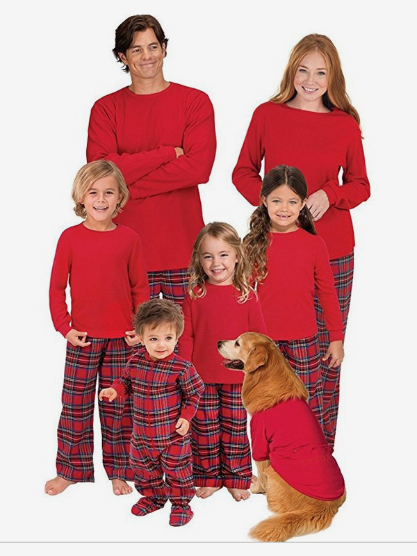 クラシックなレッドチェック柄ファミリークリスマスパジャマセット 2025